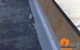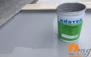 Beton terasın köşe kısımlarına pah yapıldı, boru ve süzgeç kısımları izole edildikten sonra yüksek aderanslı elyaf katkılı Köster Repamor ile tamiratı yapıldı.Köster pox 002 astar ve Köster tur 214 poliüretan esaslı gezilebilen teraslarda uygulanan UV ışınlarına dayanımlı su yalıtım malzemesi kullanıldı.Saç veya sandviç panel tarzı teraslar için de yine paslı kısımlar temizlendikten sonra UV Işınlarına dayanımlı polimer esaslı yüksek elastik malzeme Köster MS Flexfolie kullanıldı.Uygulamalar iki kat olarak yapıldı.