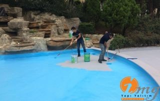 Süs havuzu izolasyonunda eski boya malzemesi kazınıp temizlendikten sonra pahlar,süzgeç değişimleri ve gerekli tamiratlar yapılır.Kristalize Köster NB Sistem su yalıtımı malzemesi ile su izolasyonu yapıldıktan sonra Termoplastik reçine esaslı havuz ve zemin boyası olan Köster Eg 155 ile 2 kat uygulama yapılarak havuzun boyama işlemi gerçekleştirilir.