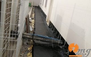 Cami şantiyemizde perde kısımlara su yalıtımı yaptık. Zemin belli bir seviyeye kadar kazıldıktan sonra Kauçuk Bitüm esaslı su yalıtım malzemesi olan Köster Deuxan 2K ile 2 kat uygulama yapıldı. Uygulamada İzolasyon filesi ve gerekli yerlerde BTM Geotekstil Kırçıllı Keçe kullanıldı. Gerekli tamiratlar yapıldıktan sonra beton atılarak işlem tamamlandı.