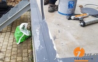 Teras kısımda metal ve fayans üzerine Btm Alfa Hibrit dediğimiz nemden etkilenmeyen tüm hava koşullarında uygulanabilen su yalıtım malzemesi uygulandı.