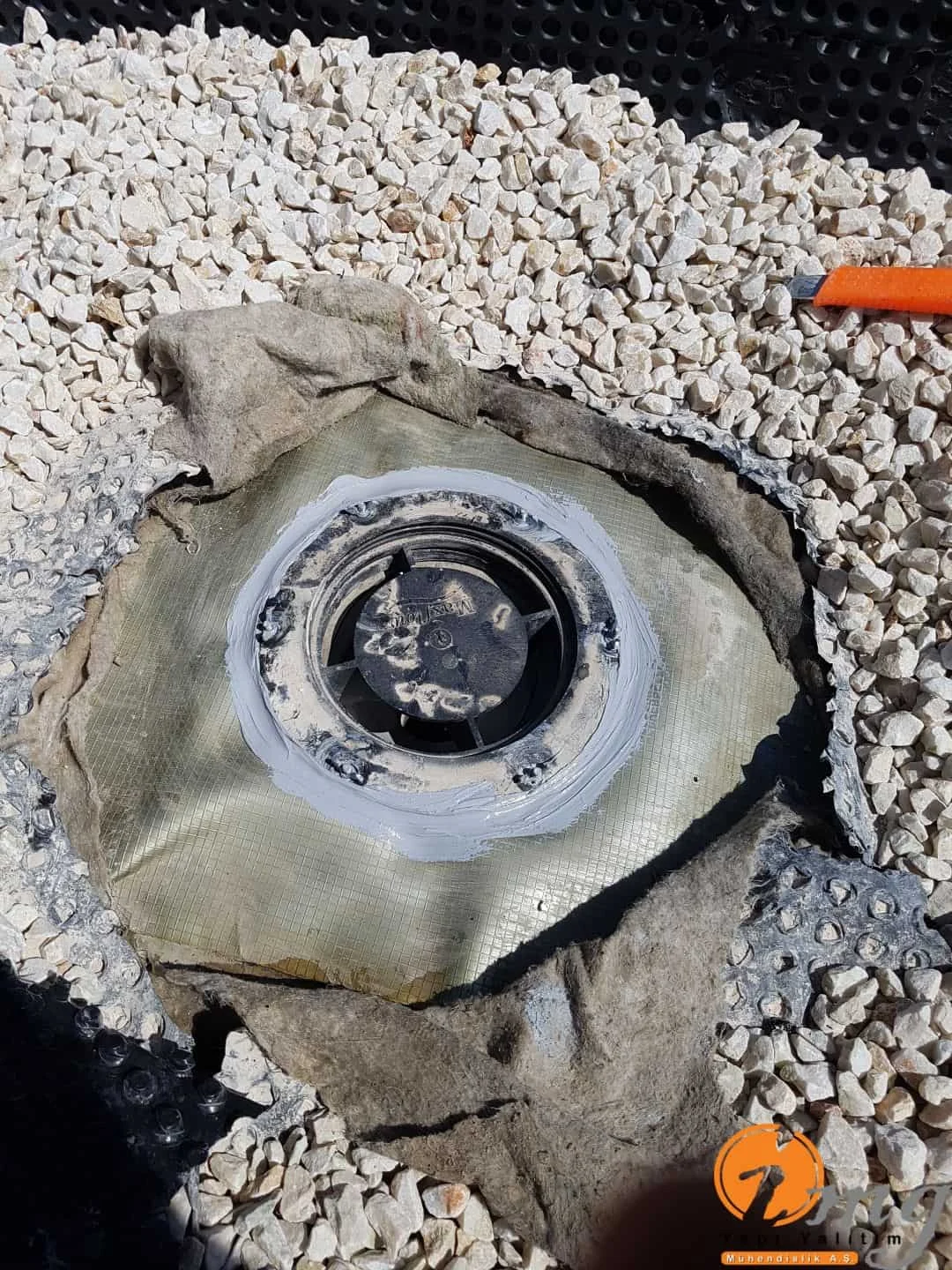 Teras katında Önce keçe sonrasında su yalıtım pvc örtüsü ve çakıl ile kapatma işlemi yapıldı.