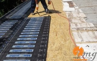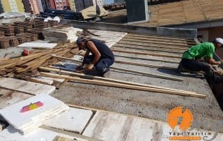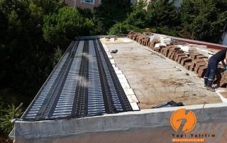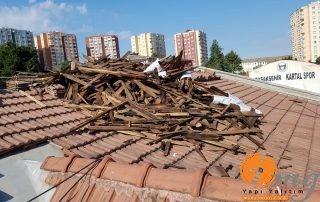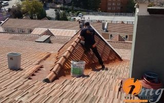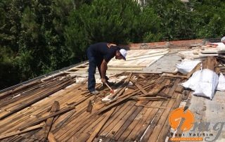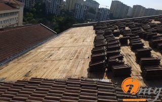 Başakşehirdeki bu şantiyemizde eskimiş olan membranı ve alt kısımdaki tahtalarını kaldırıp yerine zemini hazırlayıp Btm membran ile su yalıtımı yaptık. İşlem bitiminde kırık kiremitler değiştirilip tekrardan kiremit aktarılması yapıldı.