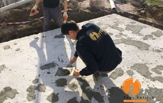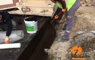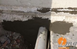 Perde kısımındaki betona kırım işlemi yapıldı, istenilen seviyeye inildikten sonra Kauçuk-Bitüm esaslı Köster Deuxan 2K su yalıtımı malzemesi uygulandı, süzgeçlerin değişimine özellikle dikkat edildi, gerekli tamiratlar yapıldıktan sonra izolasyonun üstü beton ile kapatılarak işlem sonlandırıldı.