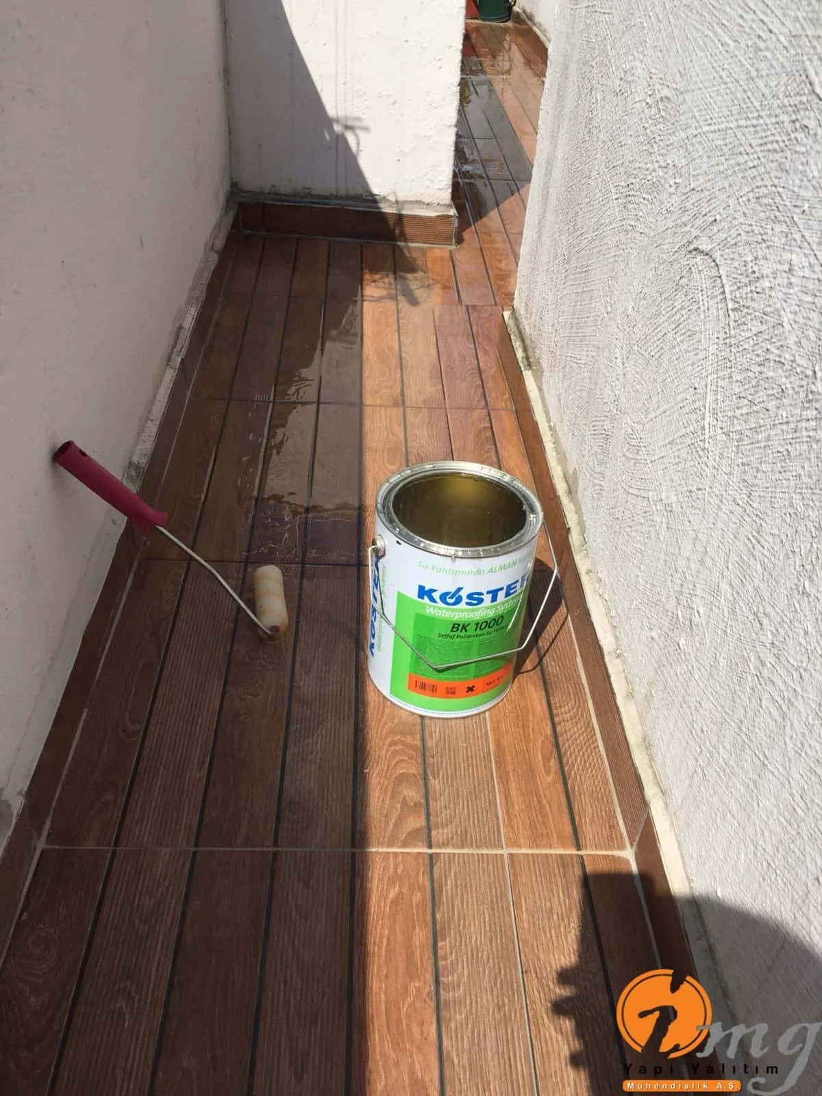Fayans üzerine Köster BK 1000 Şeffaf su yalıtımı uygulaması yapıldı. Astar olarak BK 1000 primer kullanıldı.