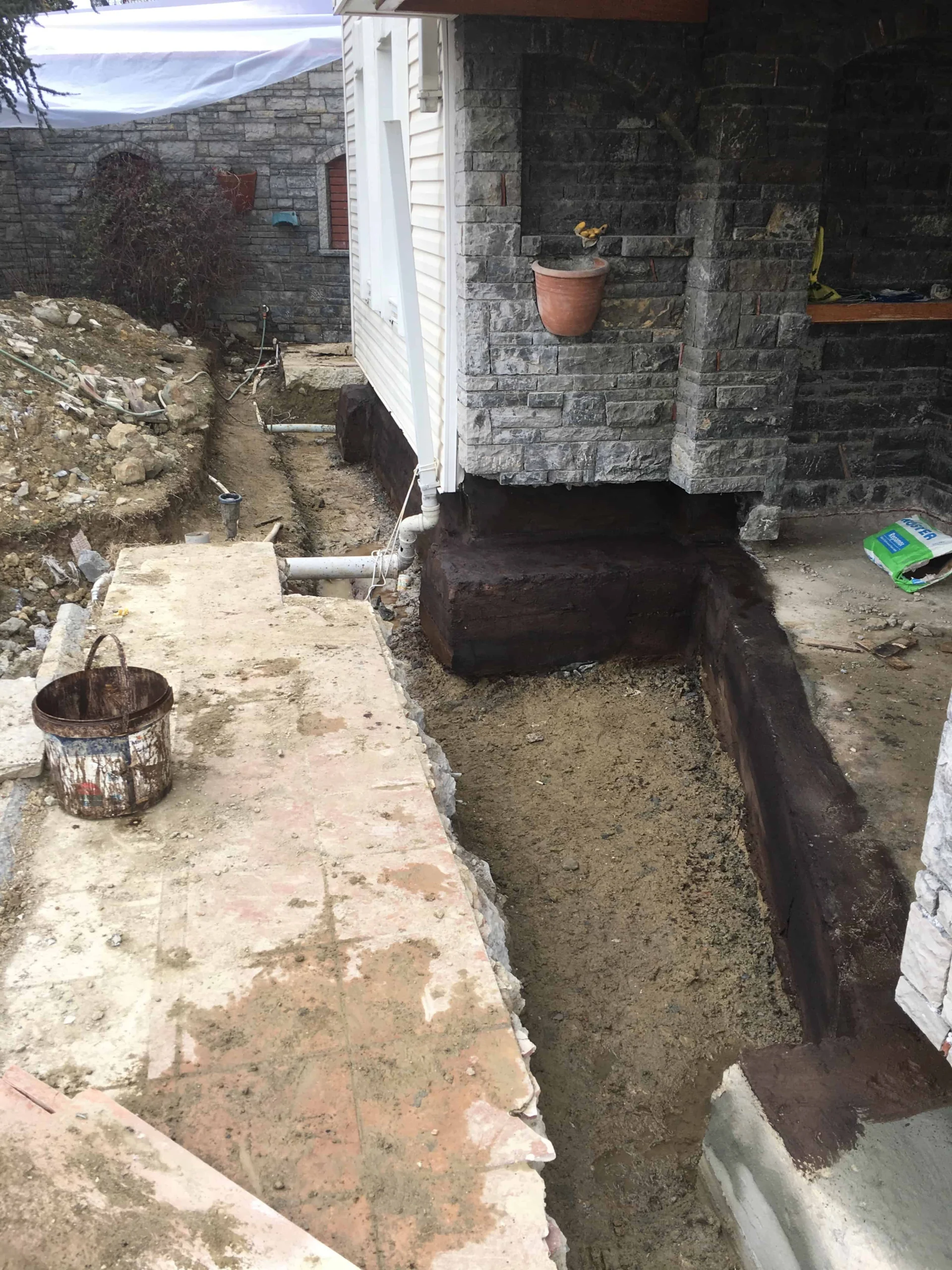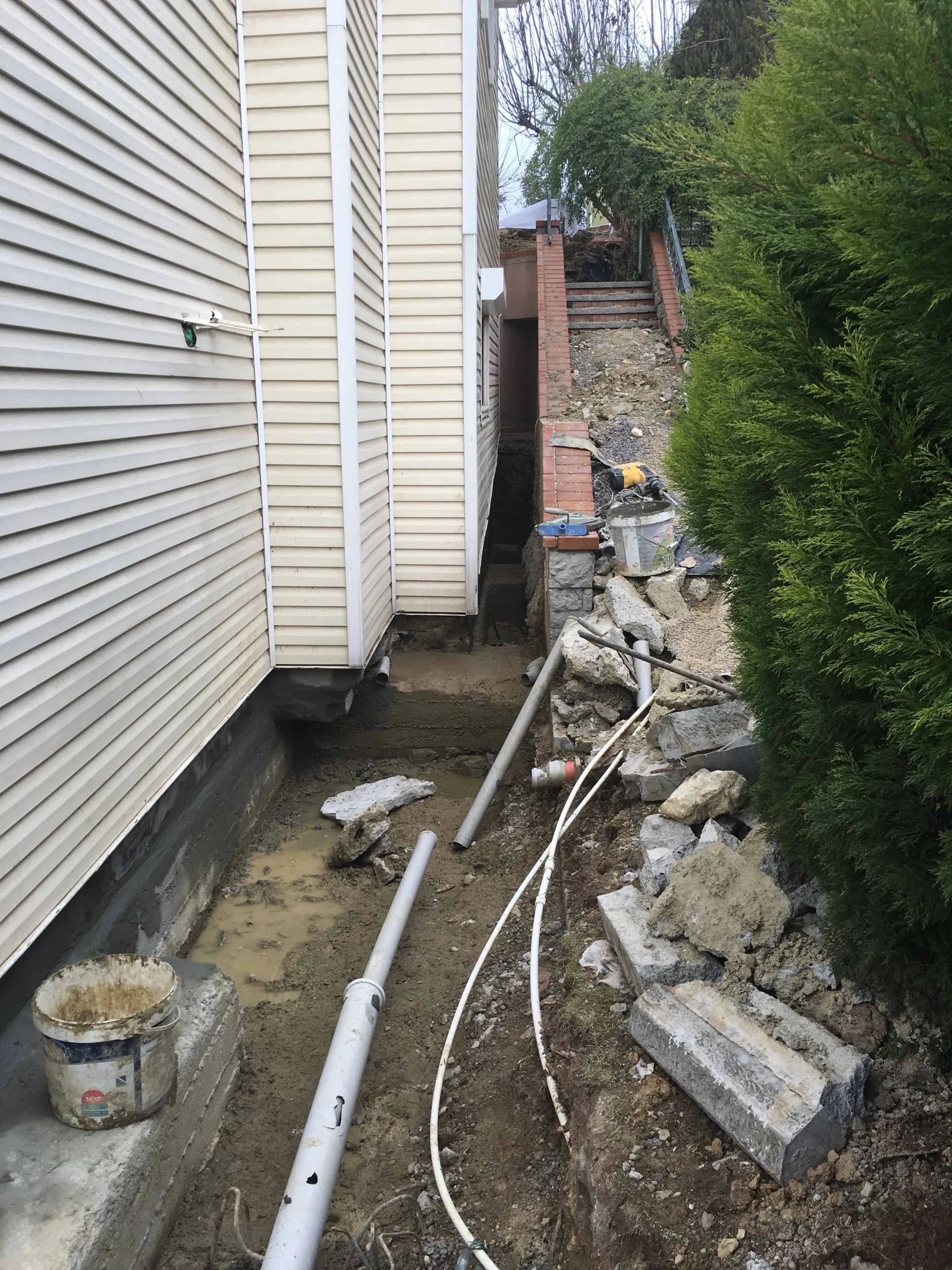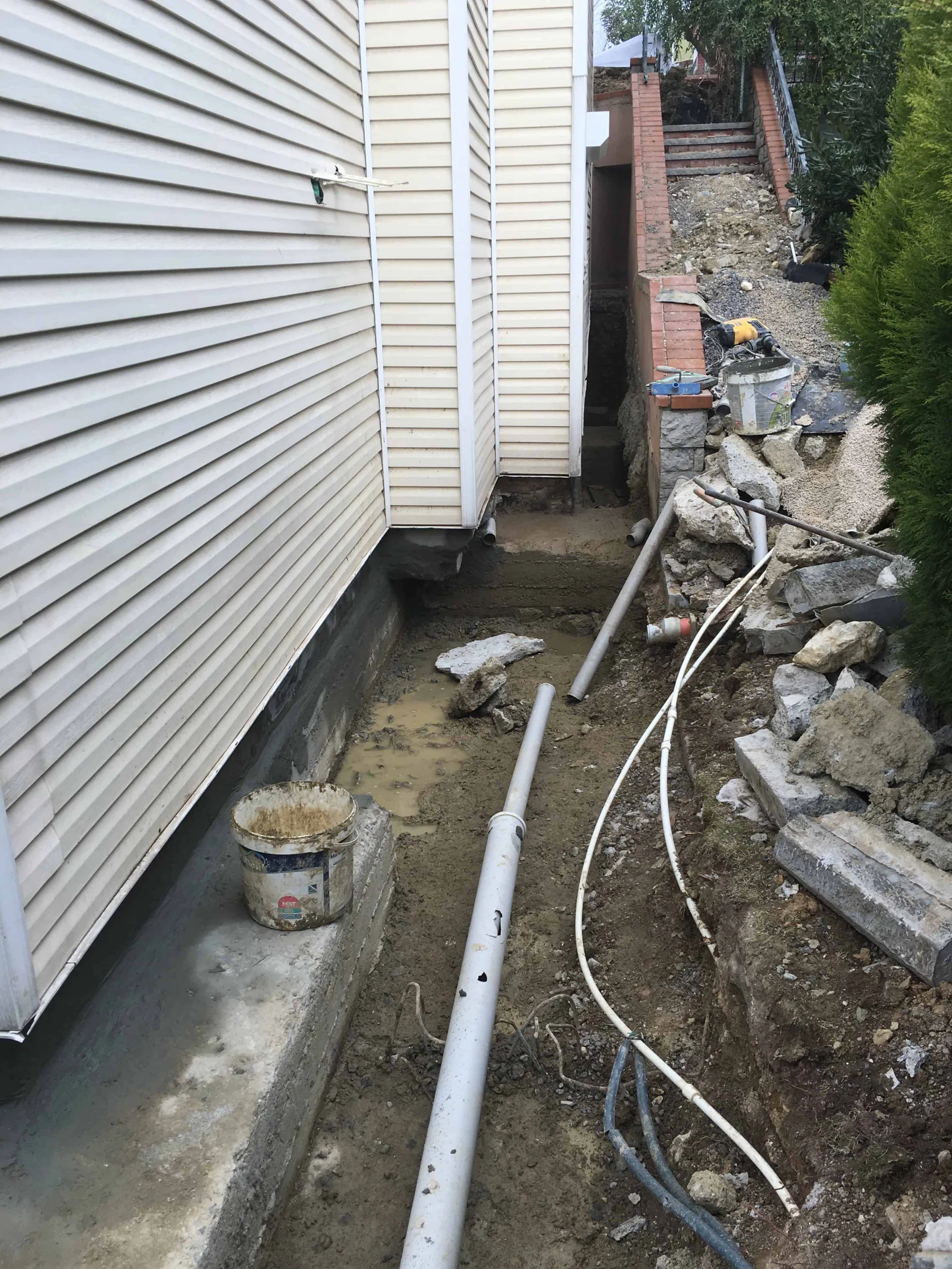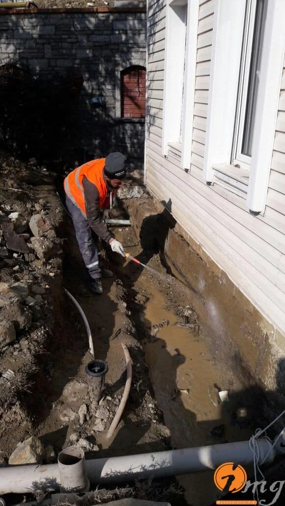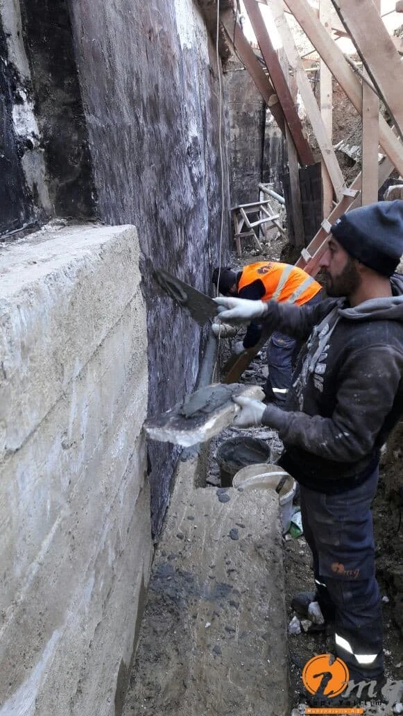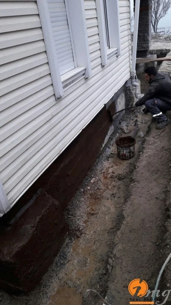 Bu şantiyemizde perde izolasyonu yapıldı.Belli bir seviyeye kadar kazılarak perde kısmını kauçuk bitüm esaslı yalıtım malzemesi uygulandı sonrasında köpük ve drenaj levhası ile kapatılma yapıldı. En son aşamada toprak örtülerek su yalıtımı bitirildi.