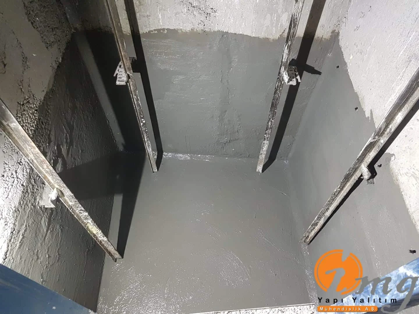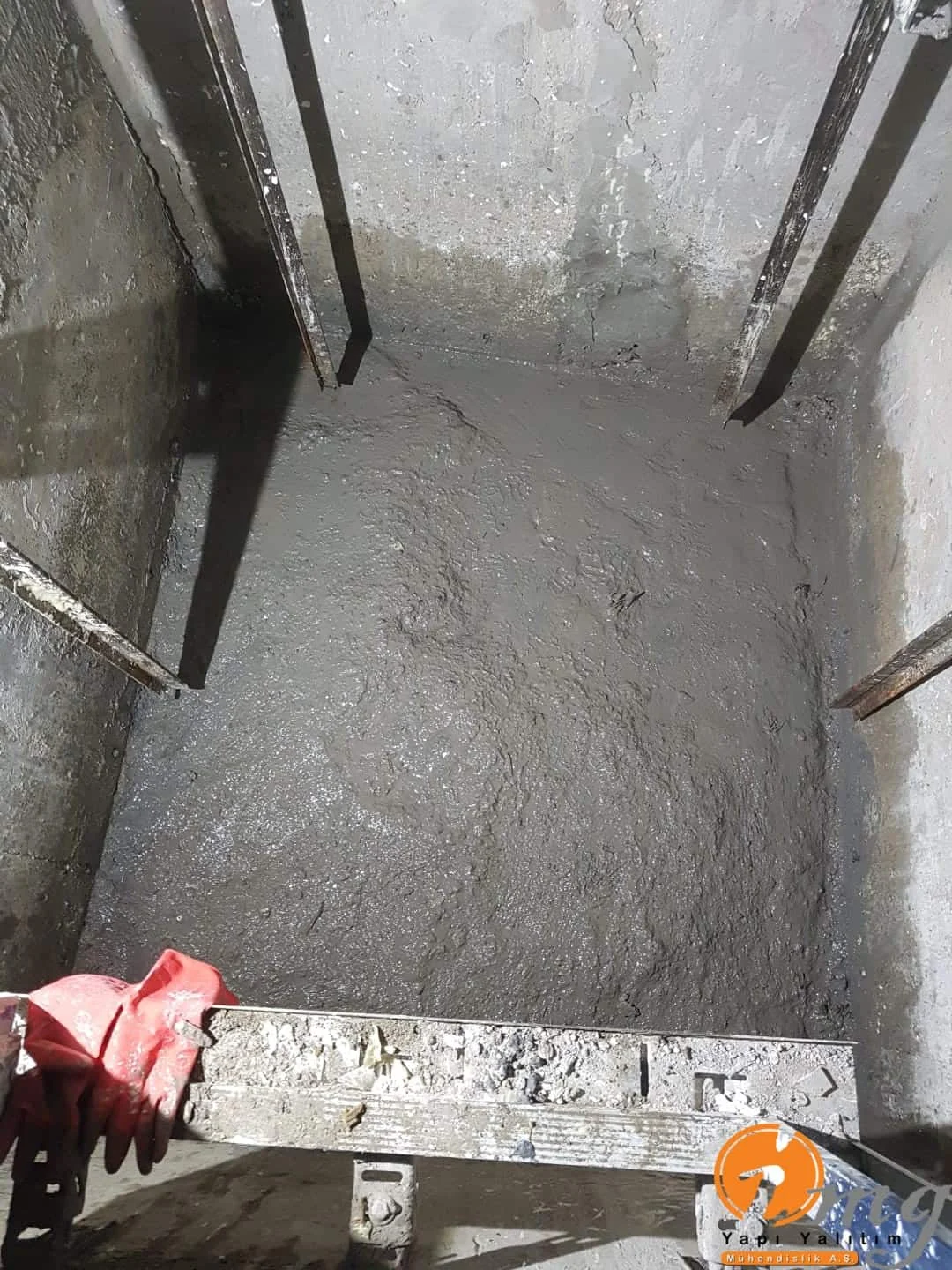 Asansör kuyusunda yaptığımız işlemler sırası ile aktif gelen su şoklayıcı ile durdurulur. Beton kontrolü yapılır ve sağlam beton ise gerekli tamiratlar yapılarak en son aşamada Kristalize su yalıtım malzemesi ile 2 kat su yalıtımı uygulaması yapılır.