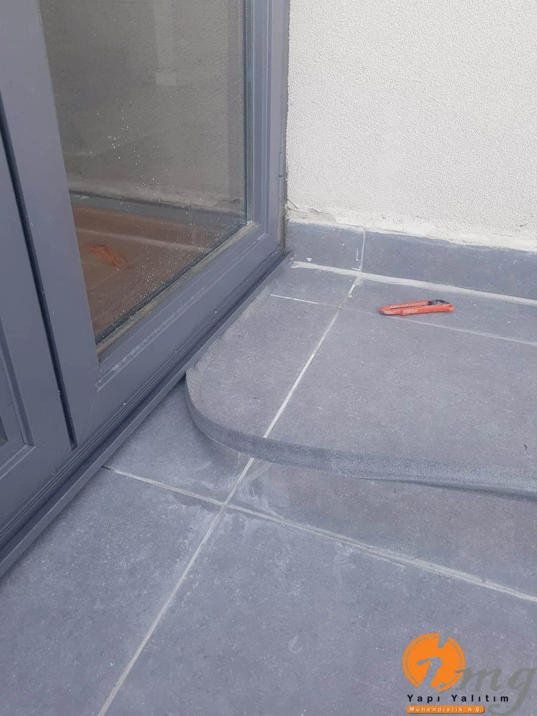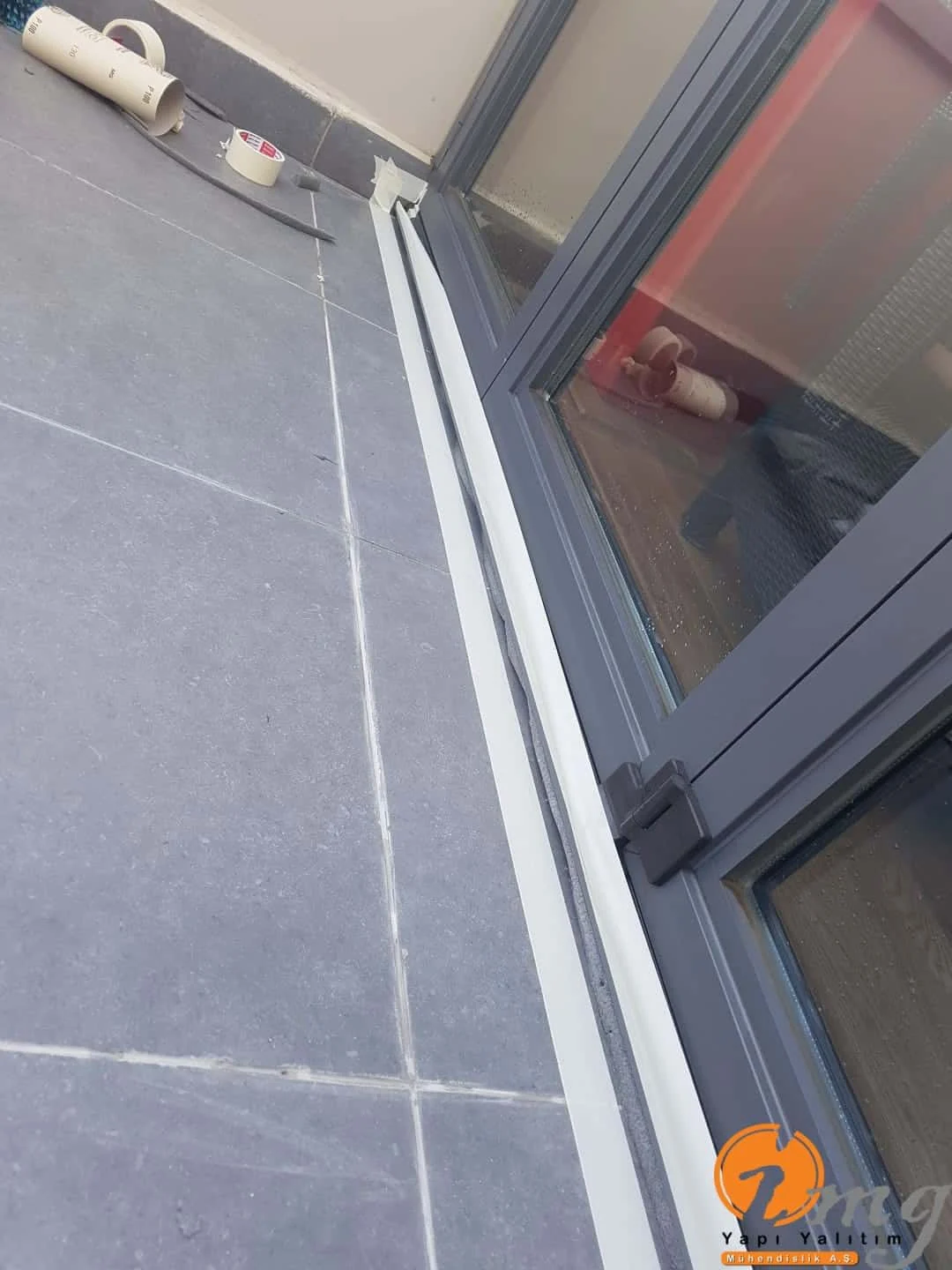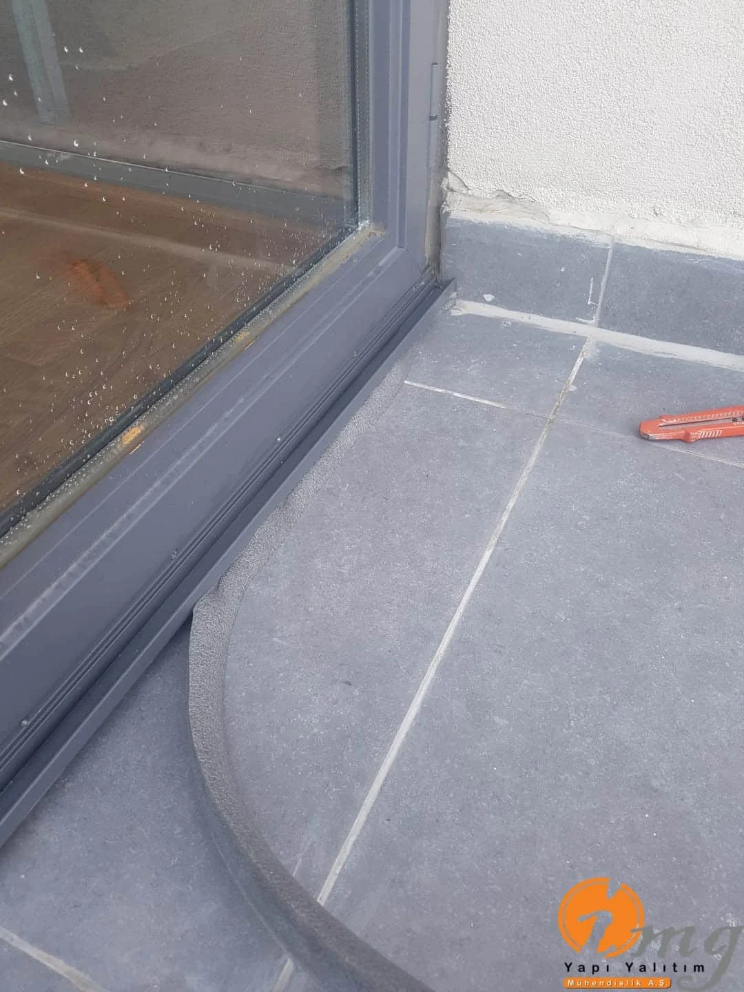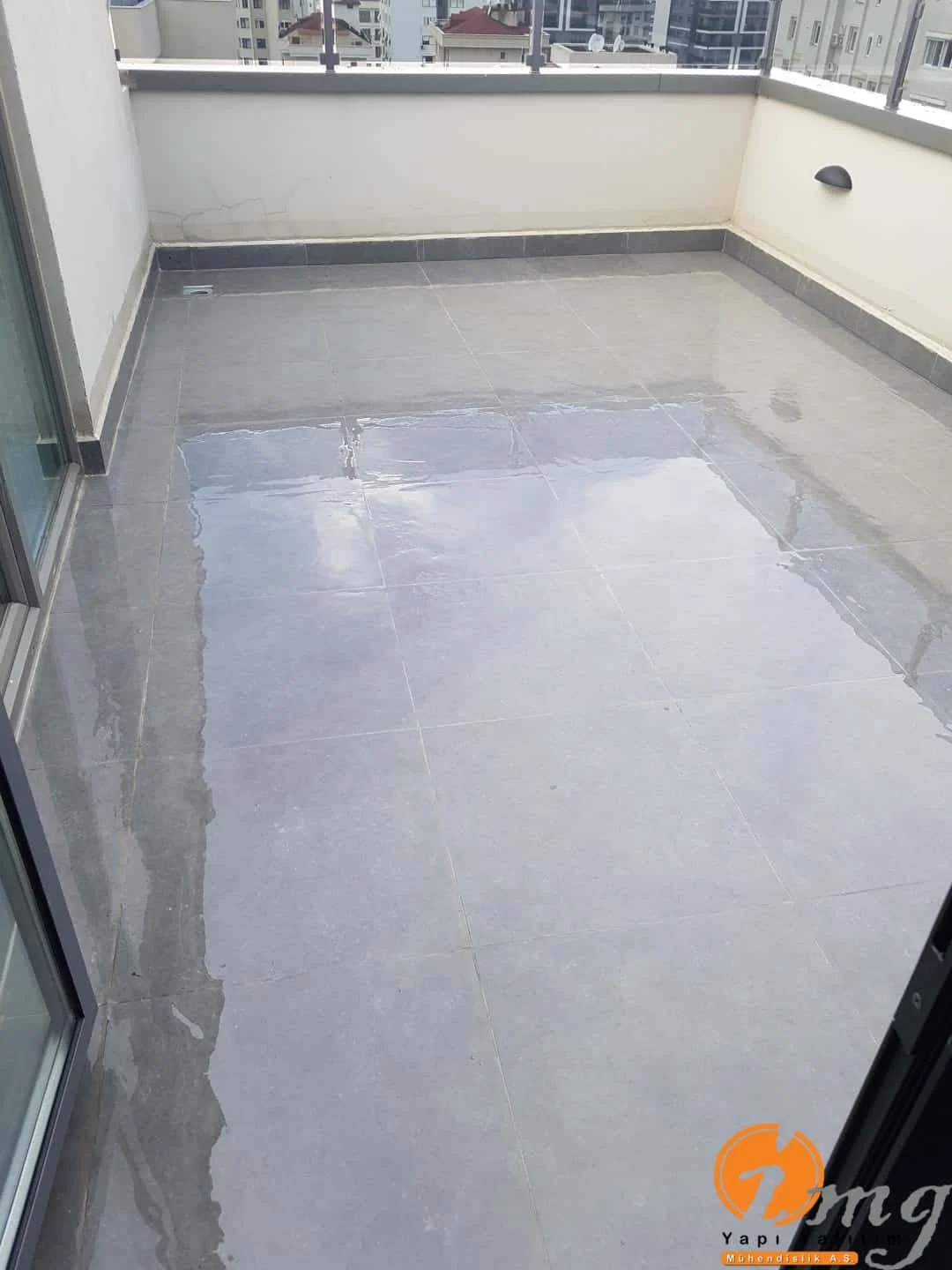 Mevcut fayanslar kaldırılmadan neme dayanımlı şeffaf su yalıtımı malzemesi kullanıldı. Kenar kımlara Poliüretan lastik uygulaması yapıldı.