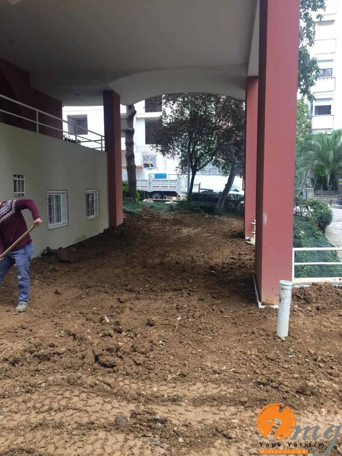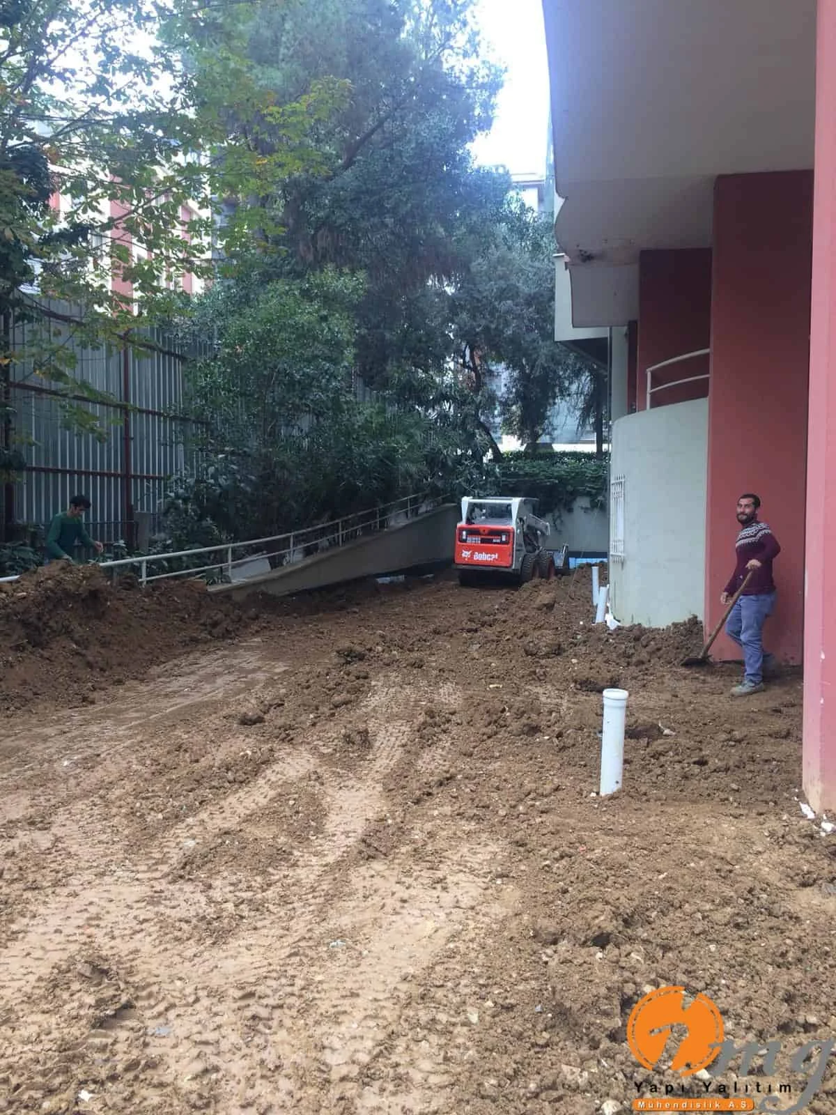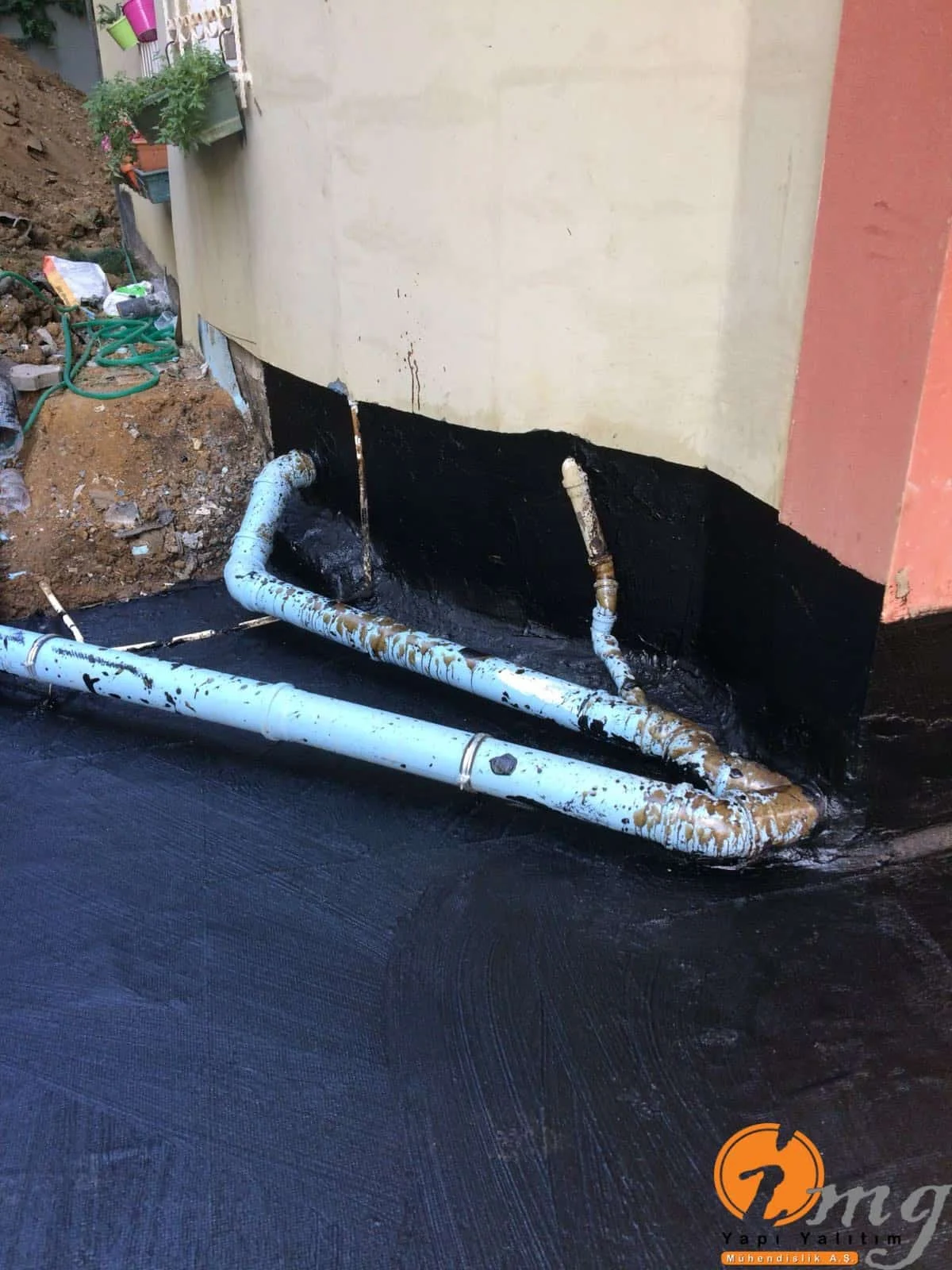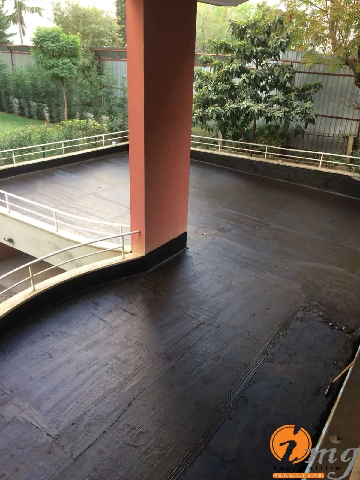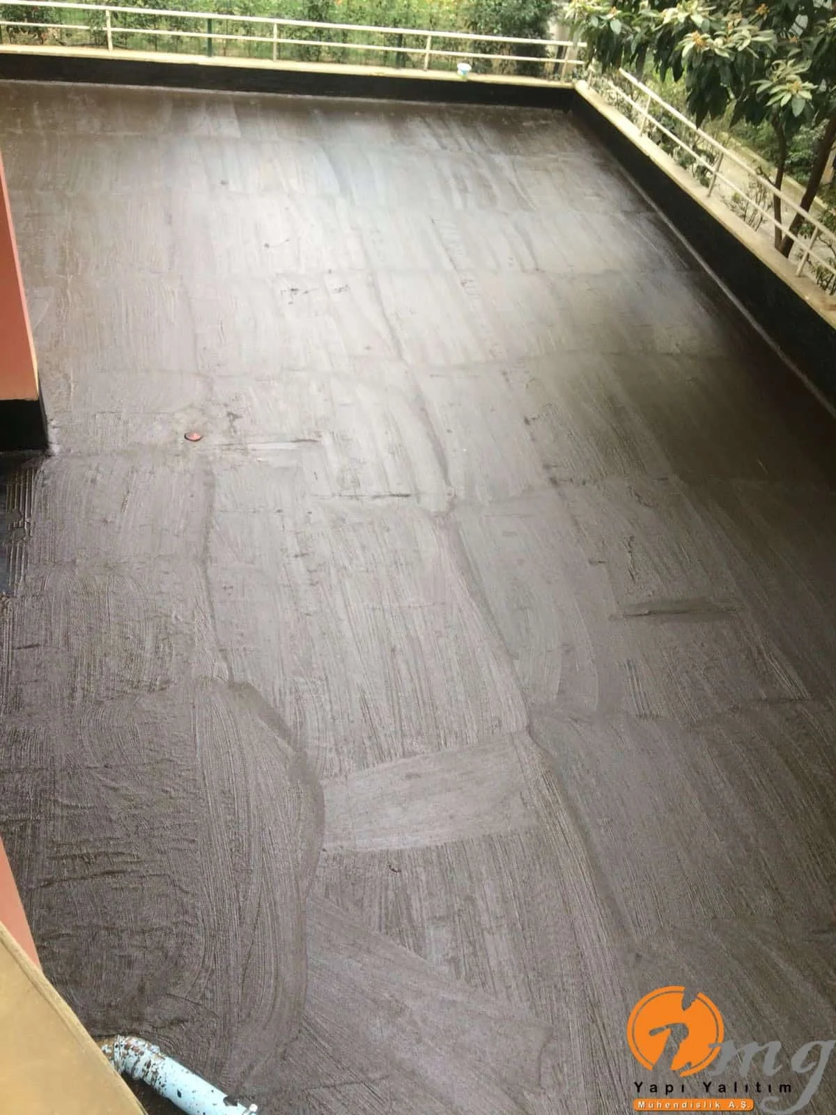 Teras ve perde kısım uygulaması yapılan bu şantiyemizde 2 kat Kauçuk ve Bitüm esaslı su yalıtım malzemesi ve izolasyon filesi kullanıldı.