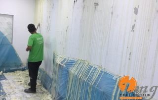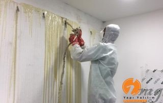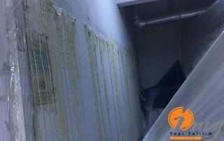 Duvardaki kılcal çatlaklar için poliüretan enjeksiyon uygulaması yapıldı. Sonrasında kristalize su yalıtımı ile de negatif yönden su yalıtımı tamamlanmış oldu.