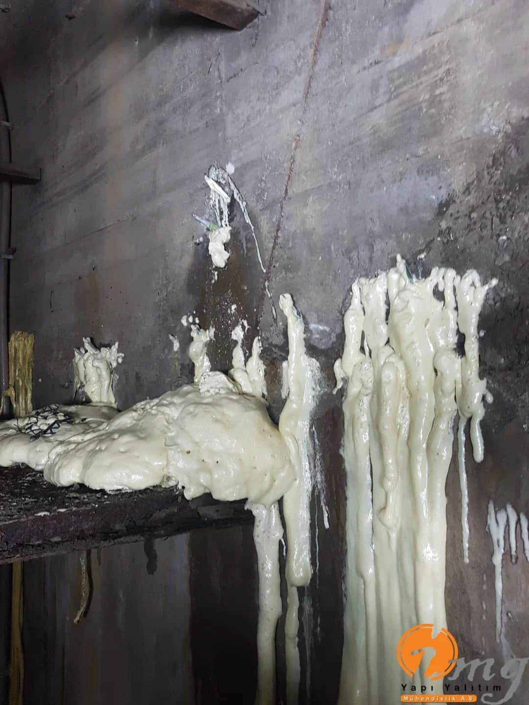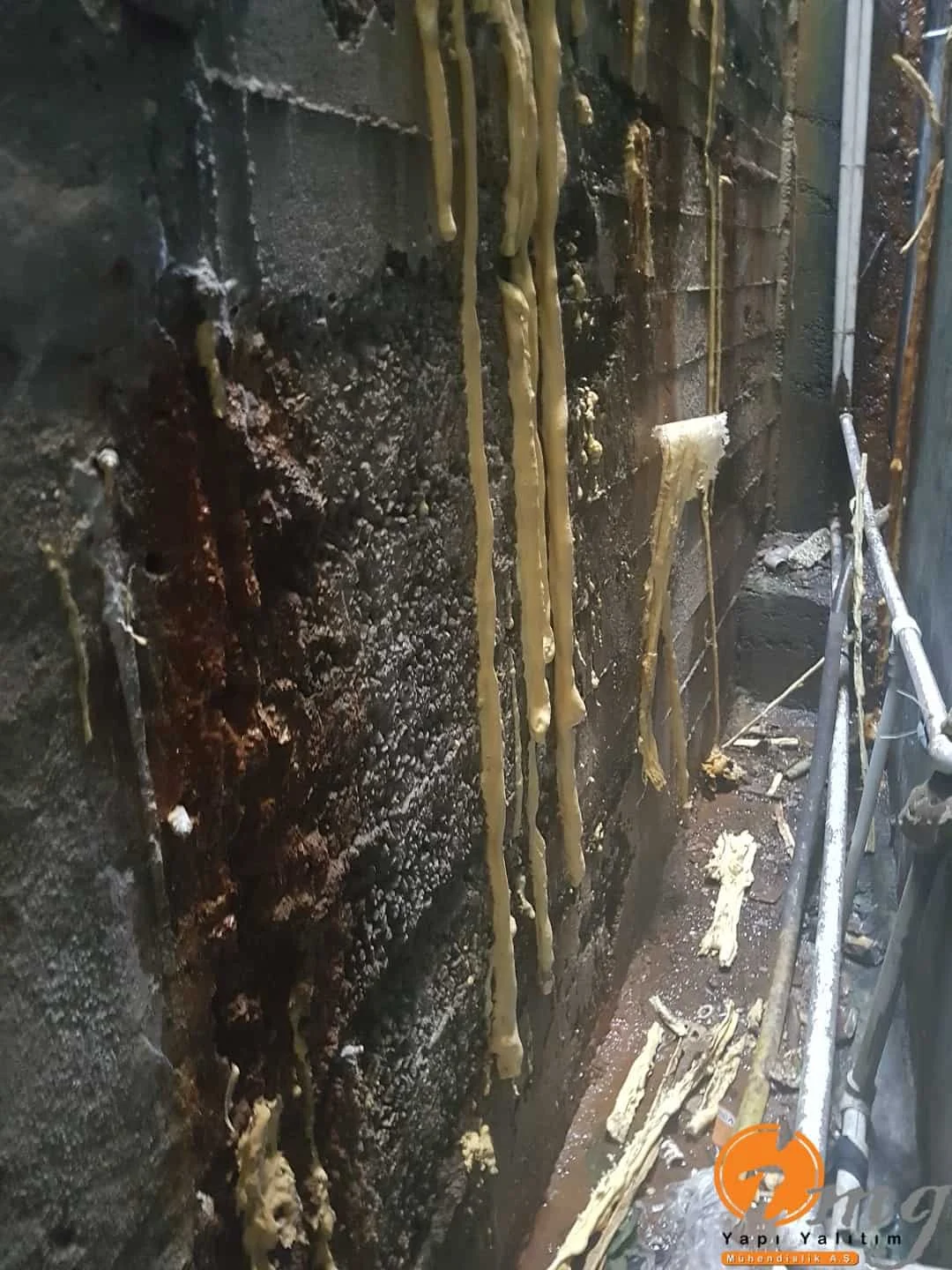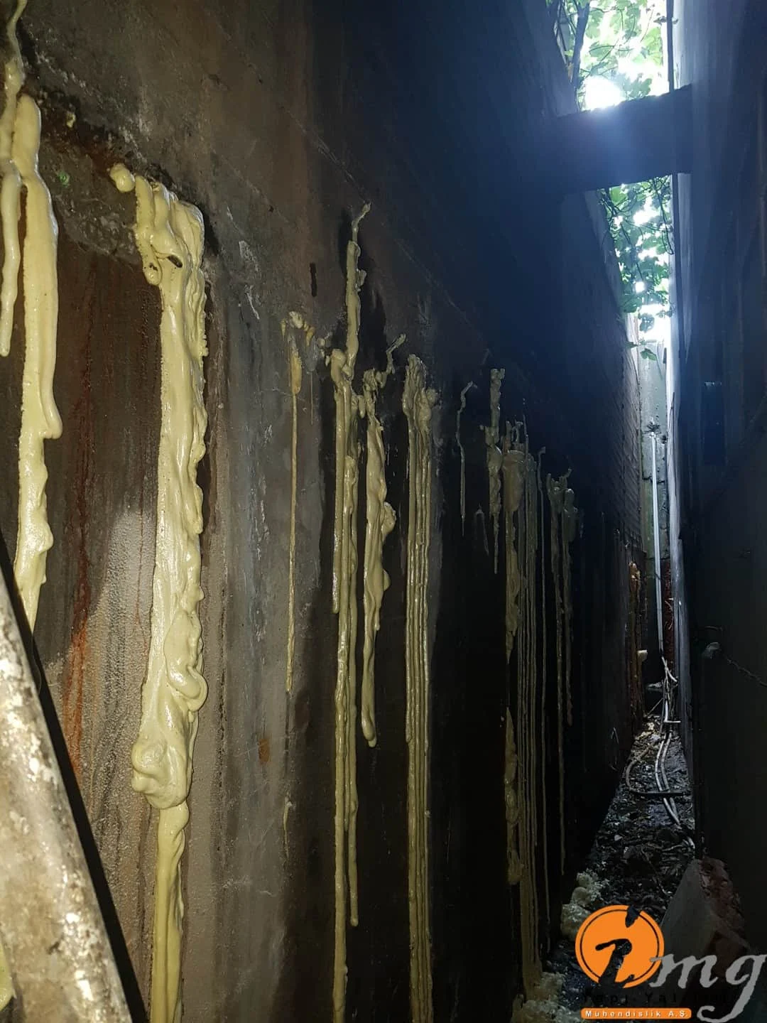 Kılcal çatlaklar için poliüretan enjeksiyon su yalıtımı yapıldı.