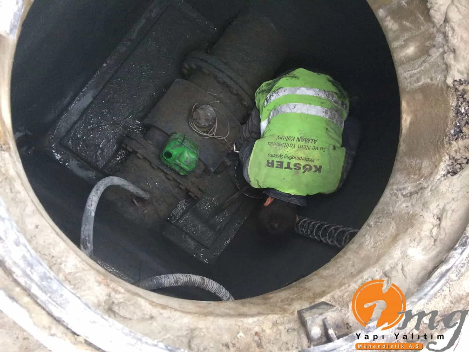 Kuyunun içindeki tüm aksesuarlar söküldü gerekli tamiratlar yapıldıktan sonra nb sistem denilen kristalize su yalıtım malzemesi ile iki kat yalıtım uygulandı.