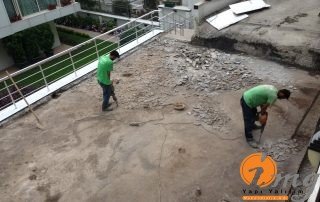 Otopark üstündeki teras kısma sürme su yalıtım malzemesi olan Köster Deuxan 2k uygulandı.