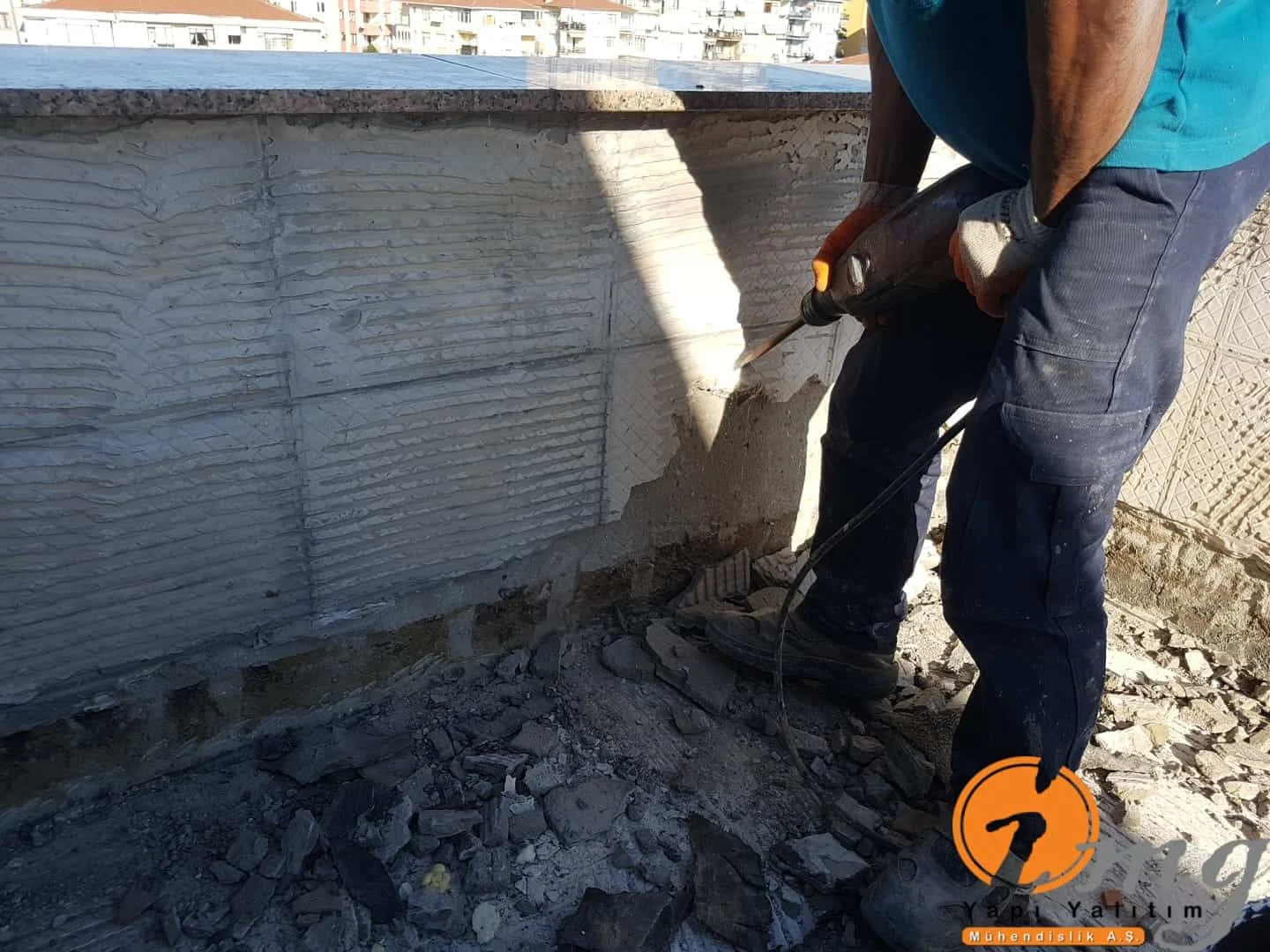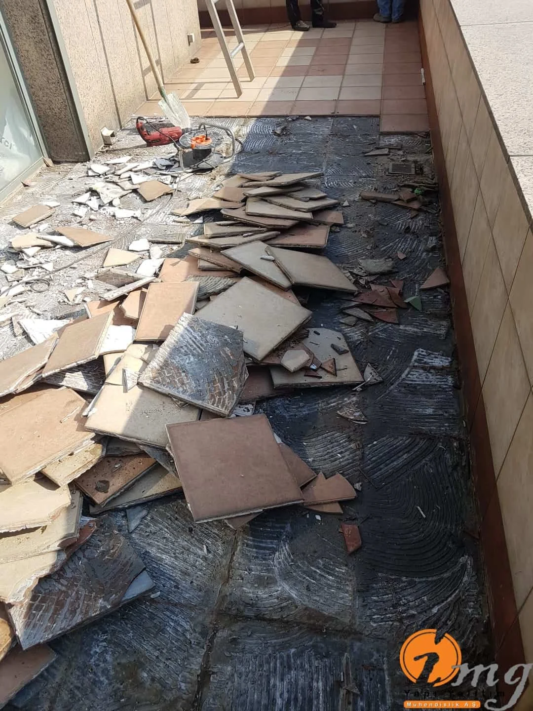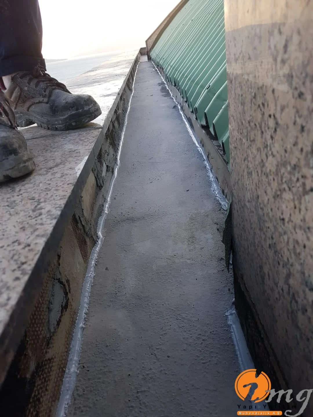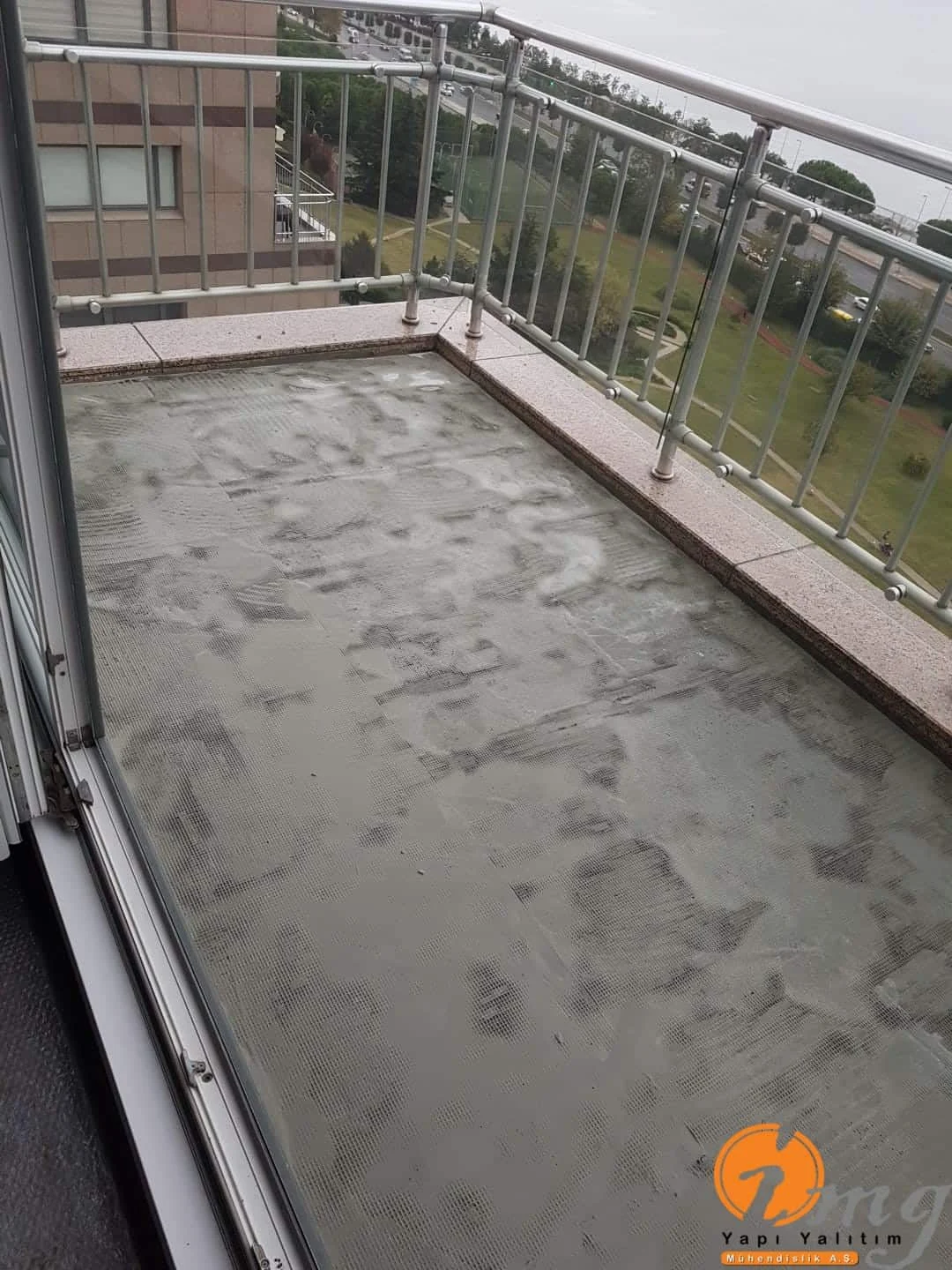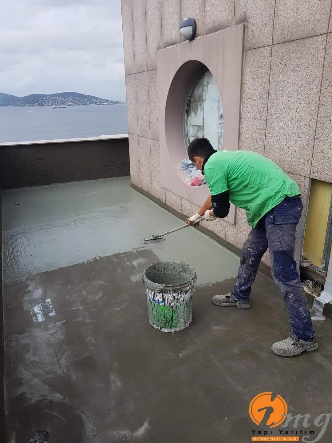 Gizli dere kısımlarında kauçuk bitüm esaslı uv ışınlarına dayanımlı Köster KBE kullanıldı. Teras kısımlarında ise fayanslar kaldırılıp pahlar yapıldıktan sonra tam elastik ıslak hacimlerde kullandığımız Köster Nb Elastik 2K ile 2 kat fileli uygulama yapıldı. Süzgeçler değiştirildi ve dip noktalara mastik çekildi.