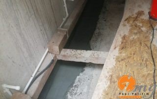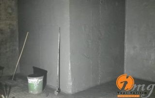 Bodrum katta öncelikle duvardaki mıcır ve takozlar temizlendi. Sonrasında elyaflı tamir harcı ile tamiratlar yapıldı ve son katmanda ise kristalize su yalıtımı malzemesi olan Köster NB sistem uygulandı.Bazı noktalardaki kılcal çatlaklar içinde Kösten ın7 dediğimiz poliüretan enjeksiyon uygulaması yapıldı.