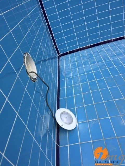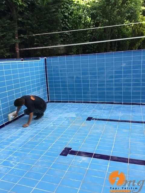 Havuz içinde derz araları temizlendi ve Dış kısımda da ıslak hacimler için kullandığımız nb elastik 2k su yalıtım malzemesi kullanıldı.