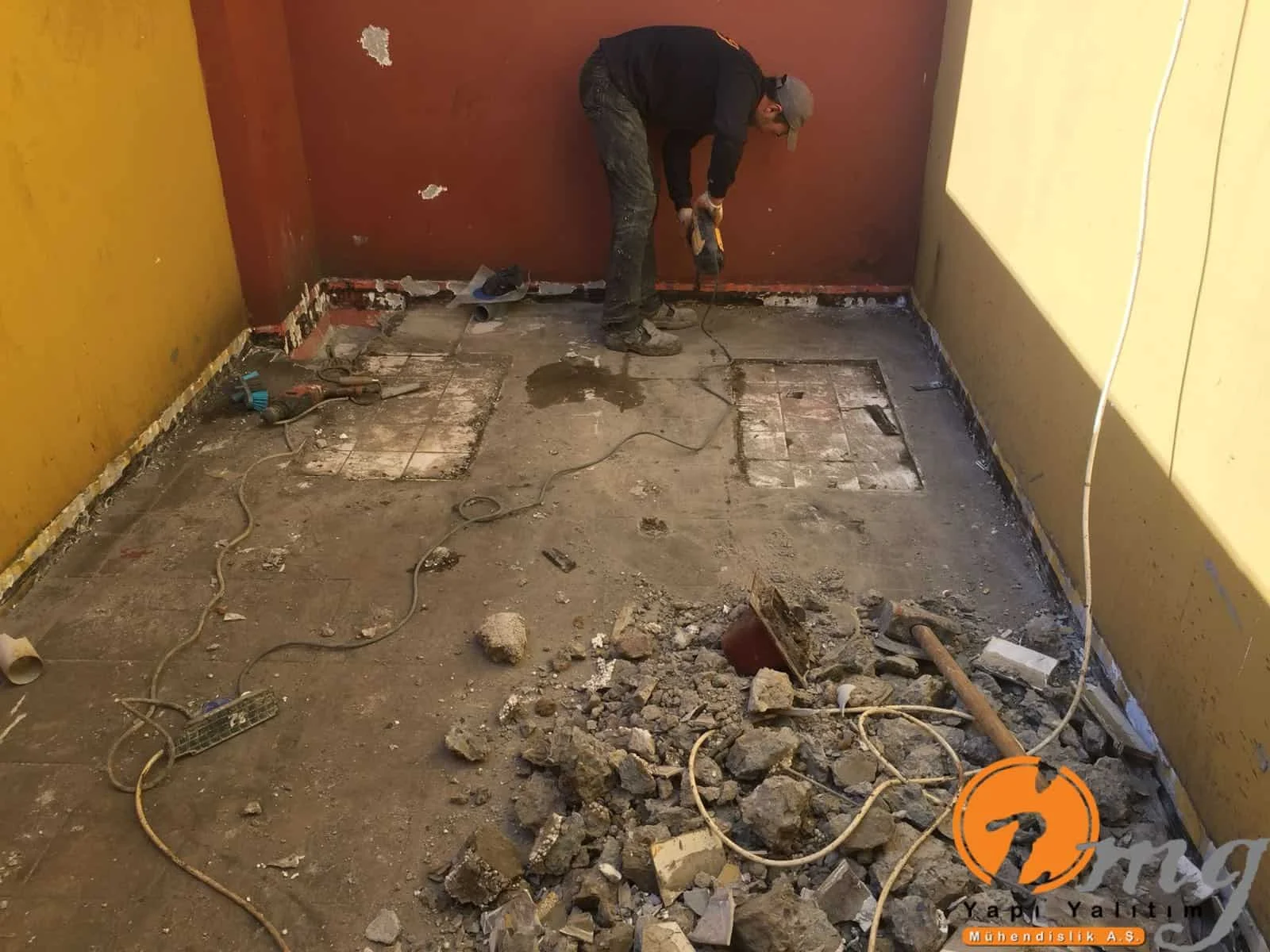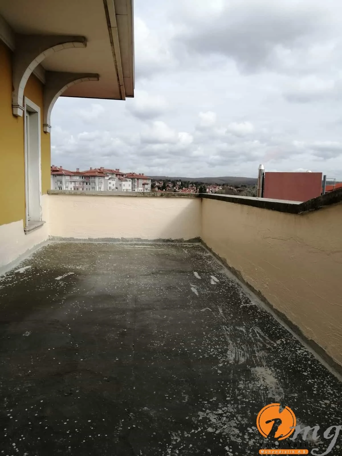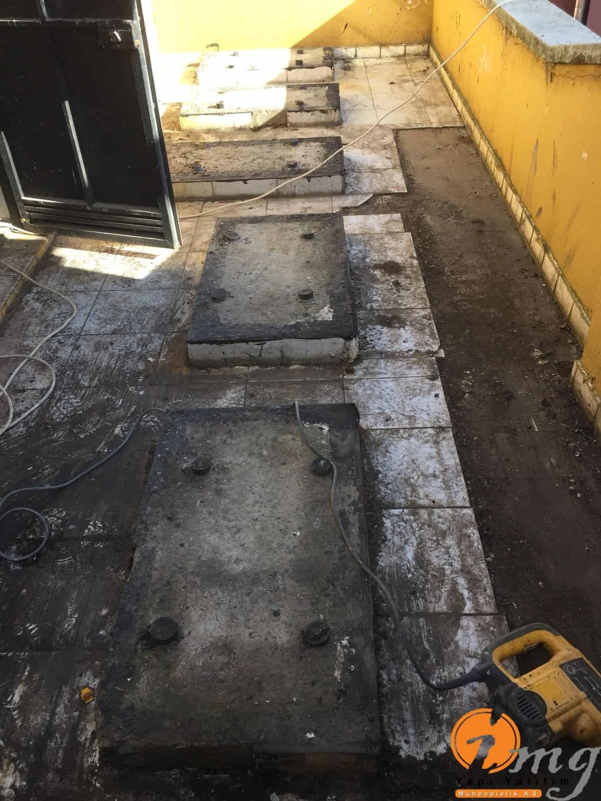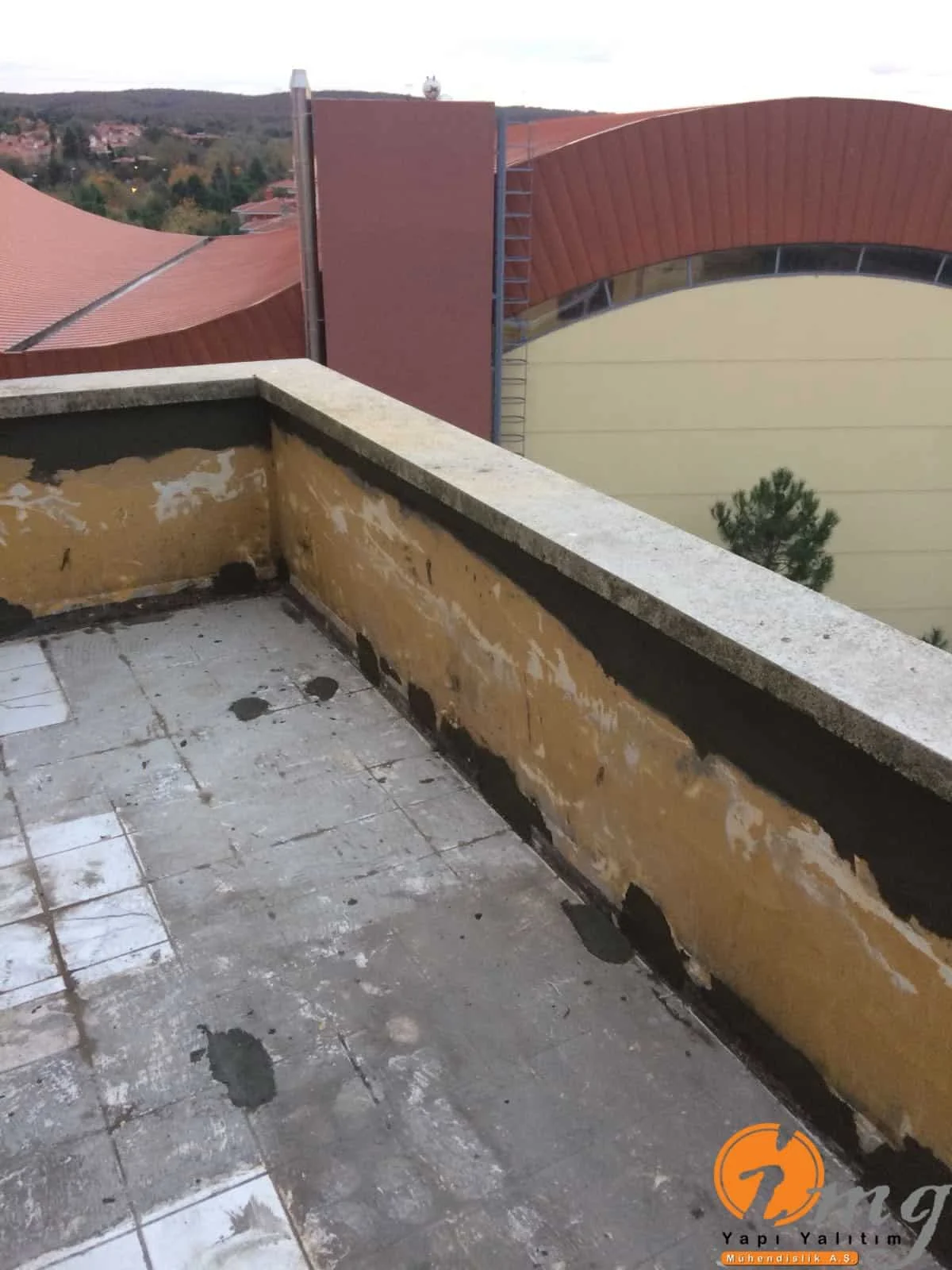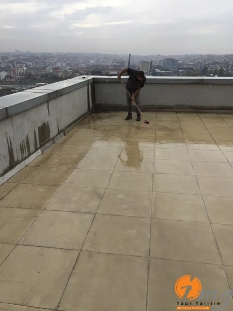 Teras kısmındaki eski fayanslar kırıldı zemin temizlendi sonrasında tam elastik malzeme olan Köster NB Elastik 2K uygulandı. En üst katmana yine fayans yapıldı. Köşe kısımlara pah çekildi.