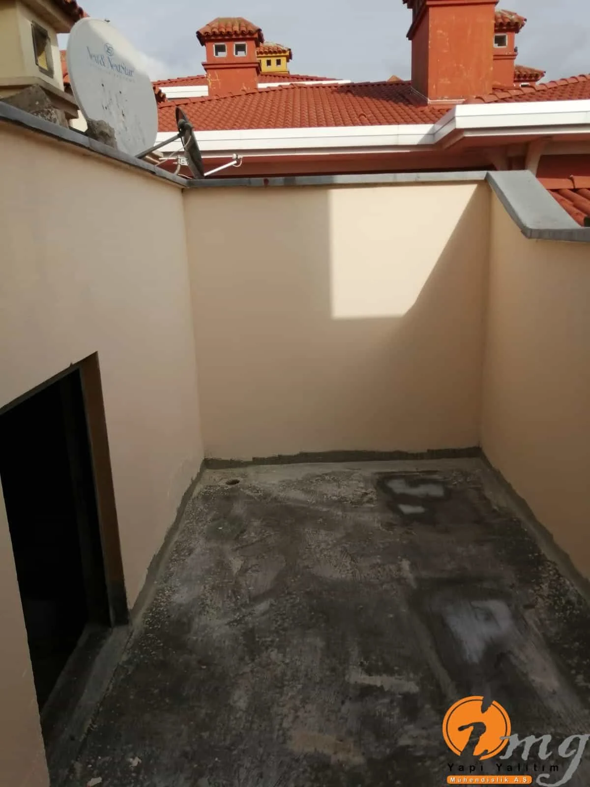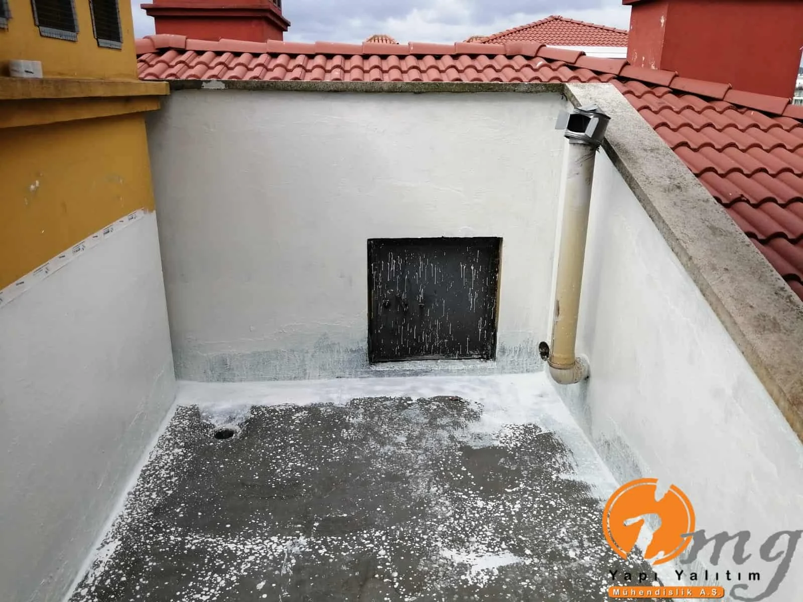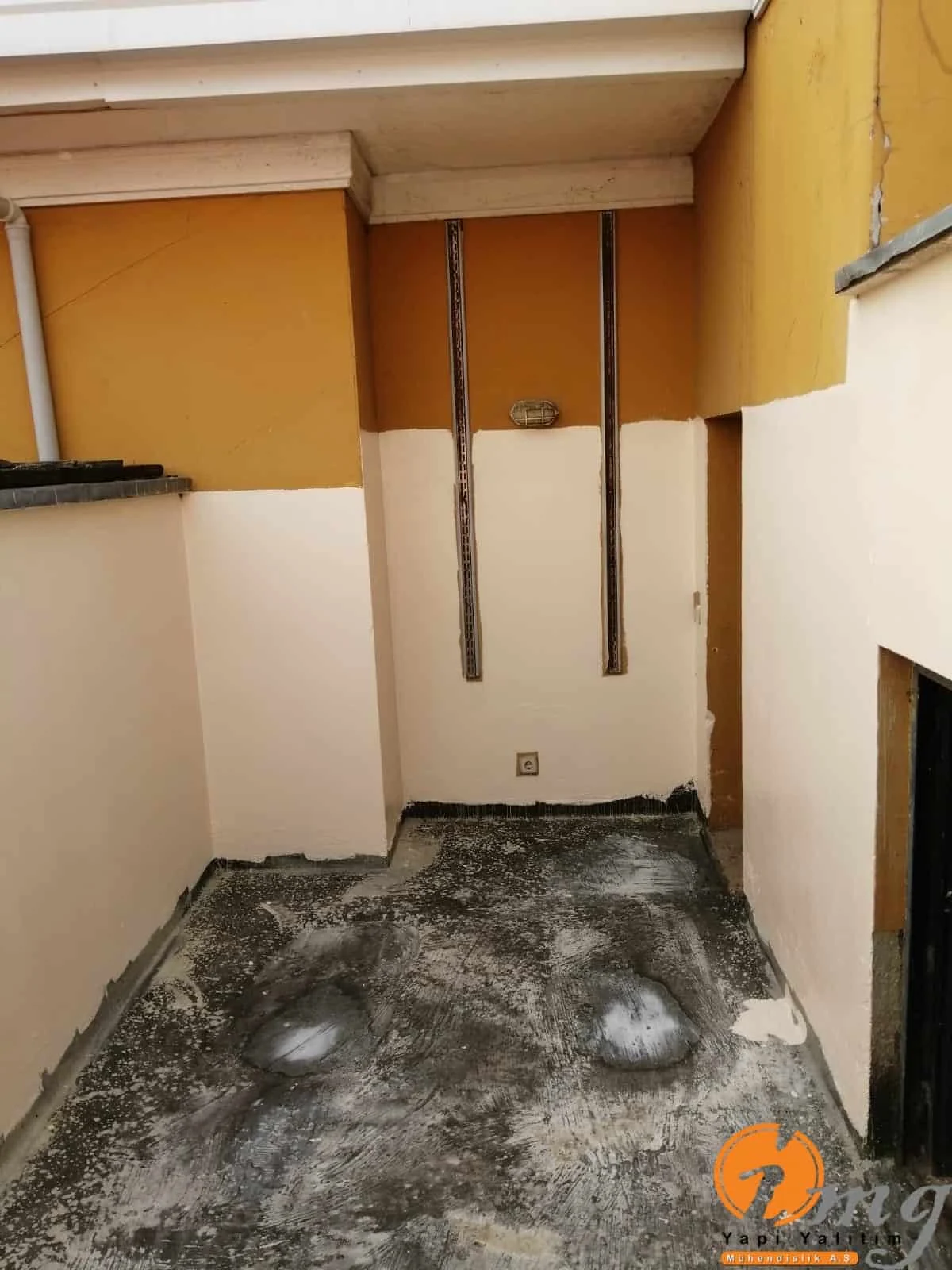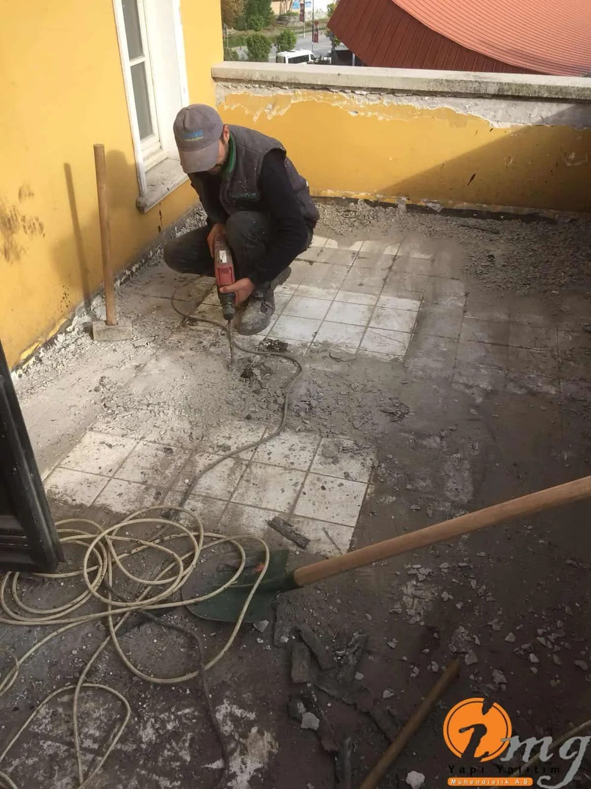 Teras kısmındaki eski fayanslar kırıldı zemin temizlendi sonrasında tam elastik malzeme olan Köster NB Elastik 2K uygulandı. En üst katmana yine fayans yapıldı. Köşe kısımlara pah çekildi.