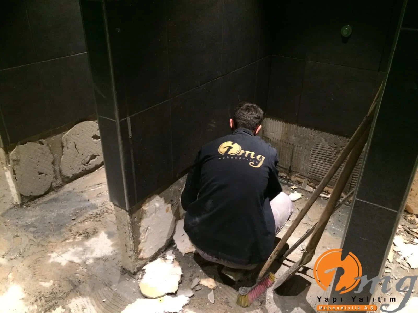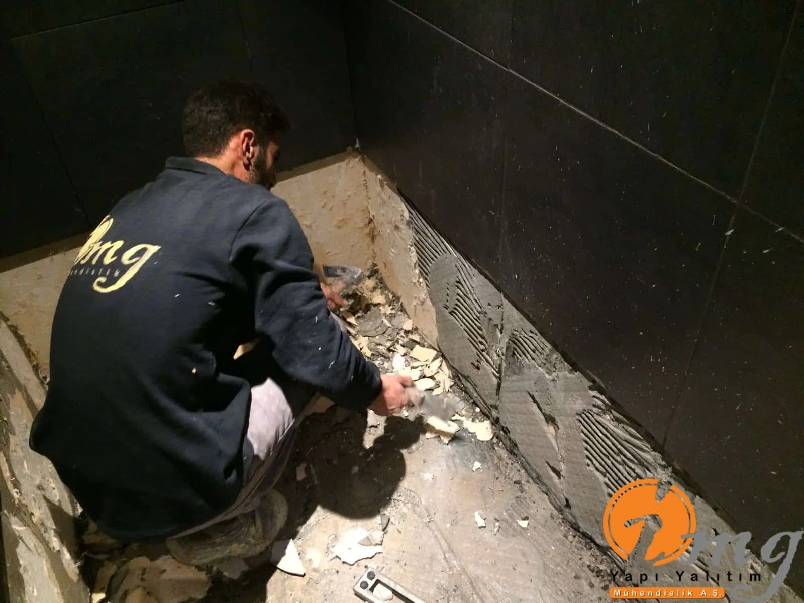 Duş yerlerindeki fayanslar sökülüp tam elastik su yalıtımı uygulaması yapıldı.