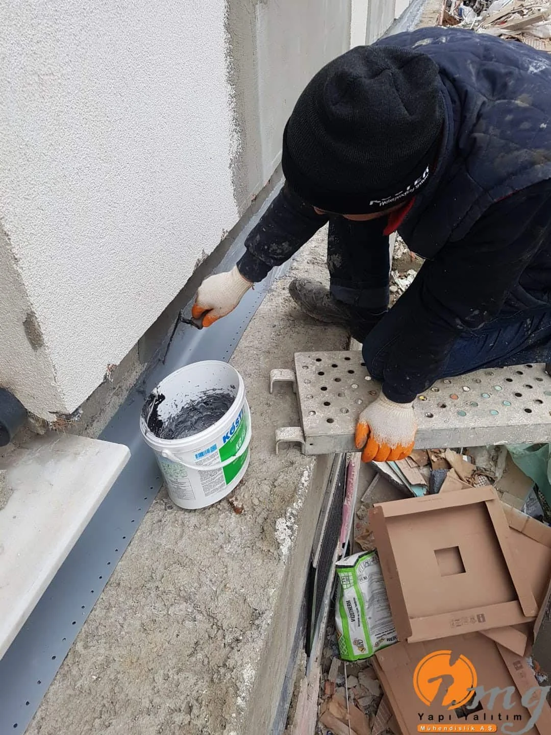 Dilatasyon uygulamasında fitil,Köster Fugenpachel FS-H akışkan mastik,Dilatasyon bandı ve Epoksi yapıştırma harcı olan Köster KB-Fix kullanıldı.