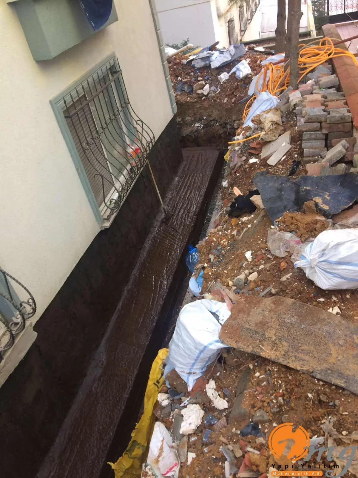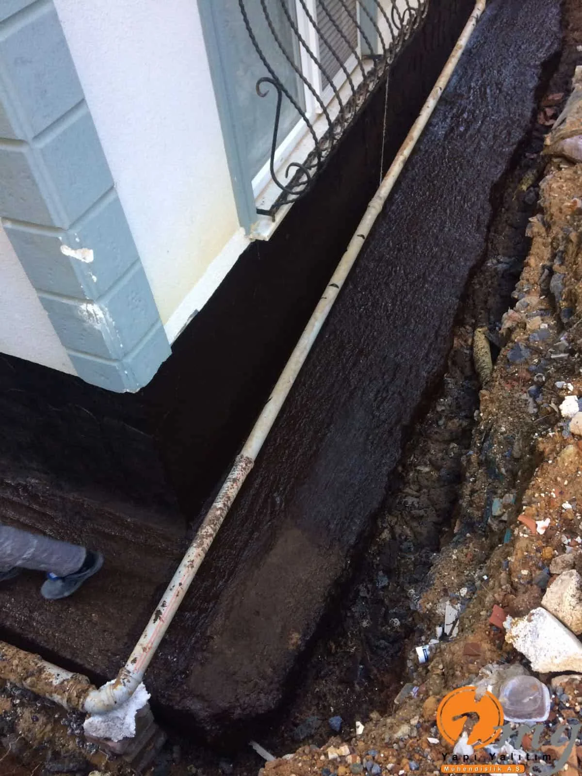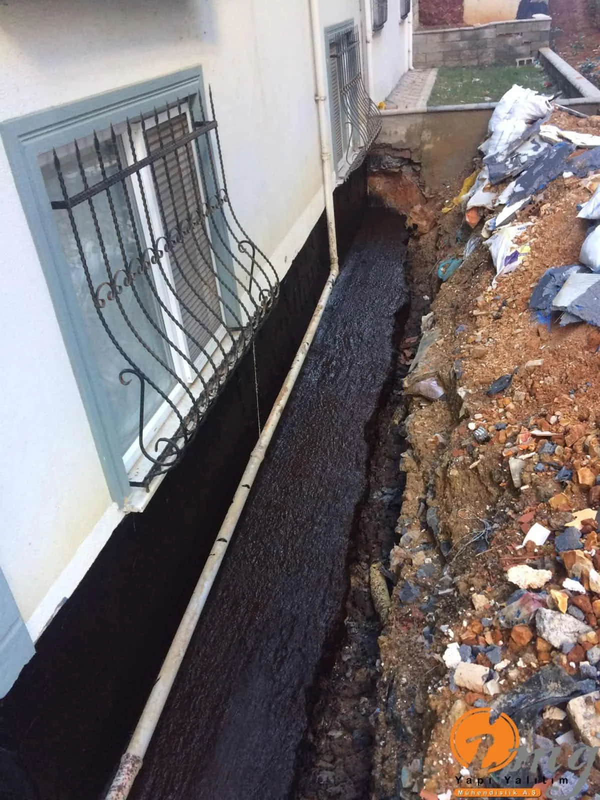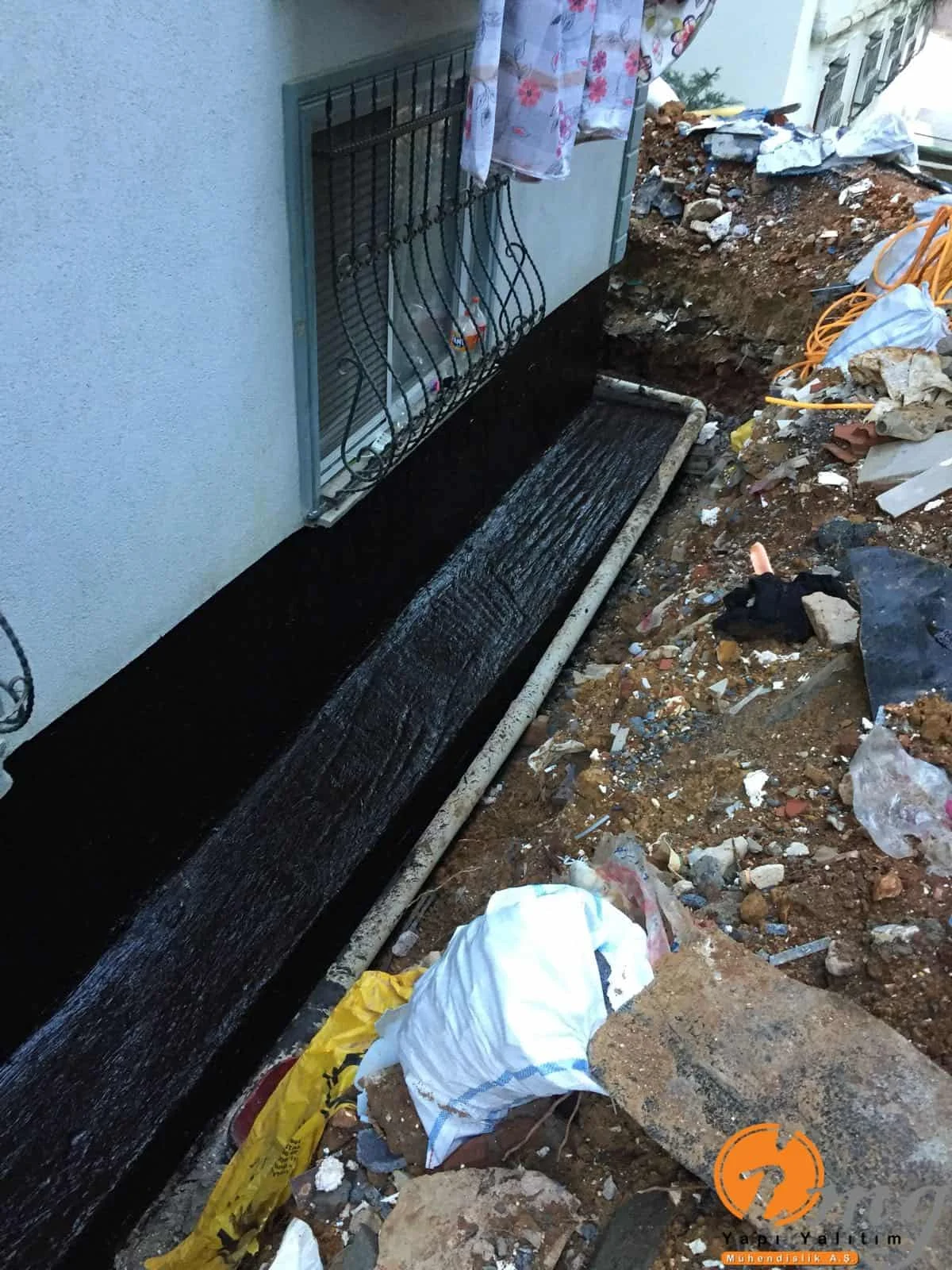 Perde izolasyonunda kauçuk bitüm esaslı su yalıtım malzemesi uygulandı.