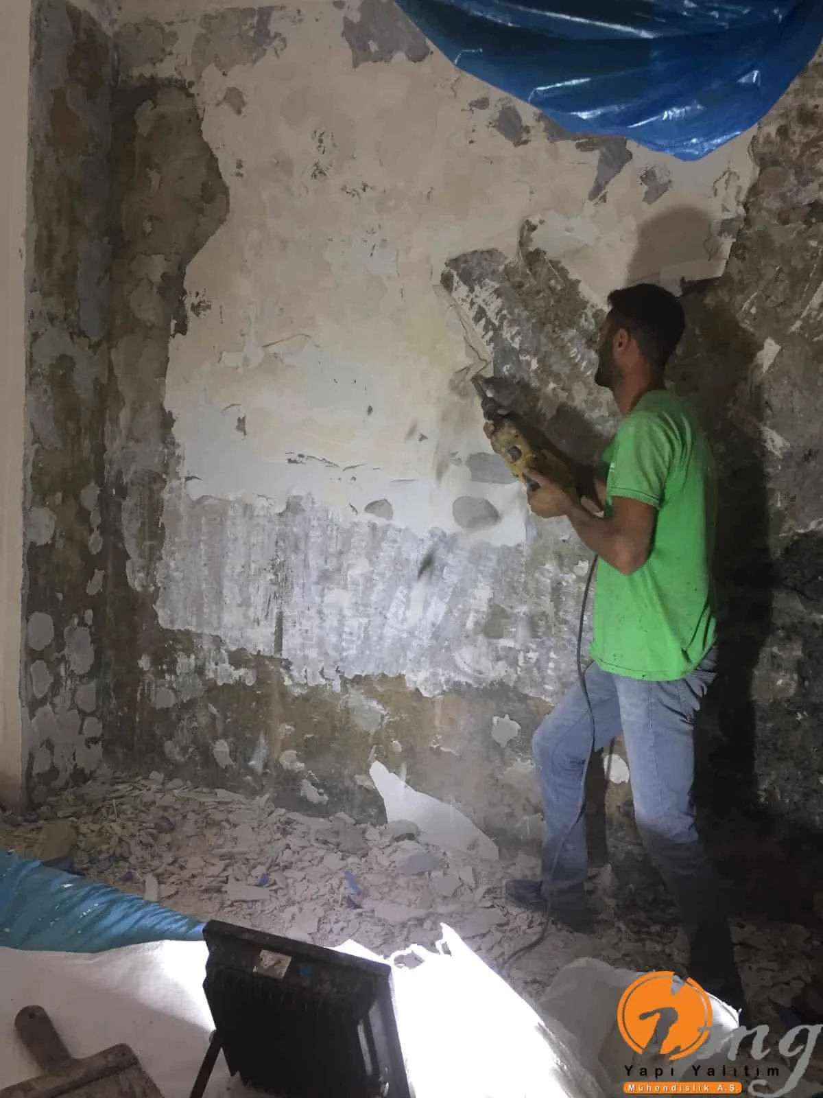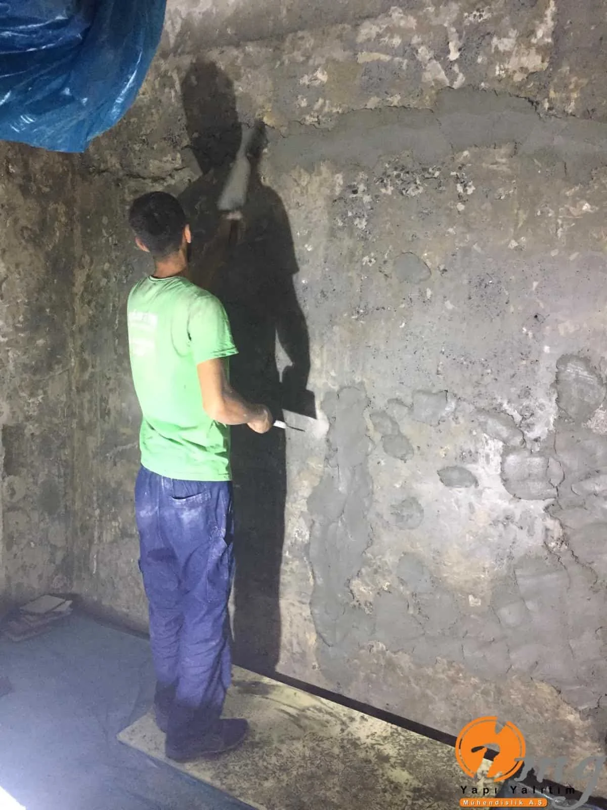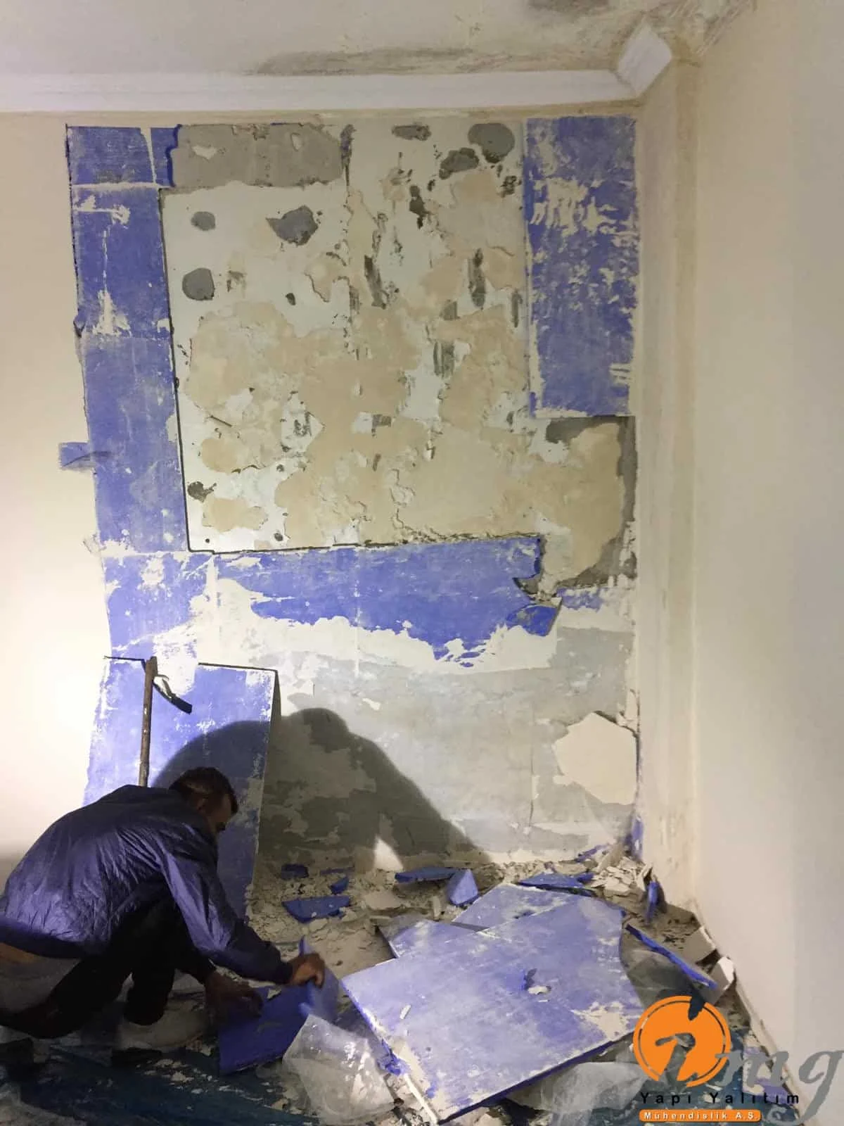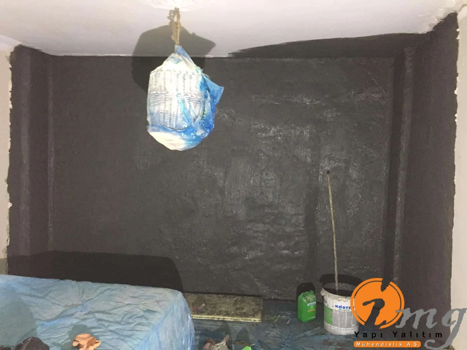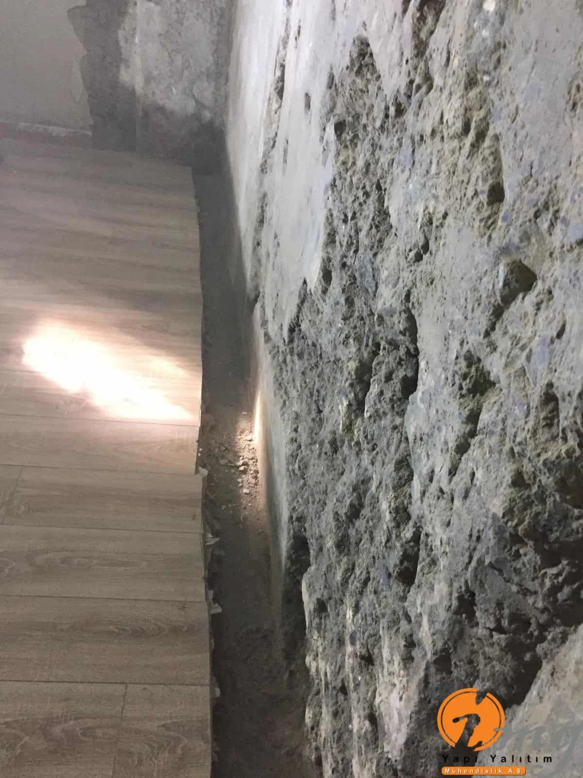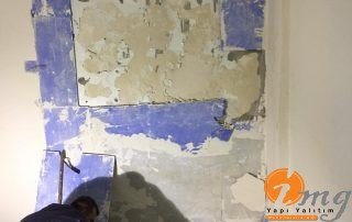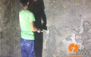 Daire içinde cadde seviyesinin alt kısmında bulunan dairede perde izolasyonu yapılamadığı için binanın içinden negatif yönden su yalıtımı yani kristalize su yalıtım malzemesi ile uygulama yapıldı.