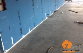 Zemin izolasyonunda gerekli tamiratlar yapıldıktan sonra yıkama ve toz işlemi tamamlandı. En son aşamada Köster Pur 222 bitüm poliüretan su yalıtım malzemesi ile tüm zemin kaplandı. Sonrasında yapılan şap uygulamasını korumak ve ikinci bir yalıtım olması için bütün alanlar Köster NB elastik tam elastik çimento esaslı su yalıtım malzemesi ile su yalıtım uygulaması yapıldı.