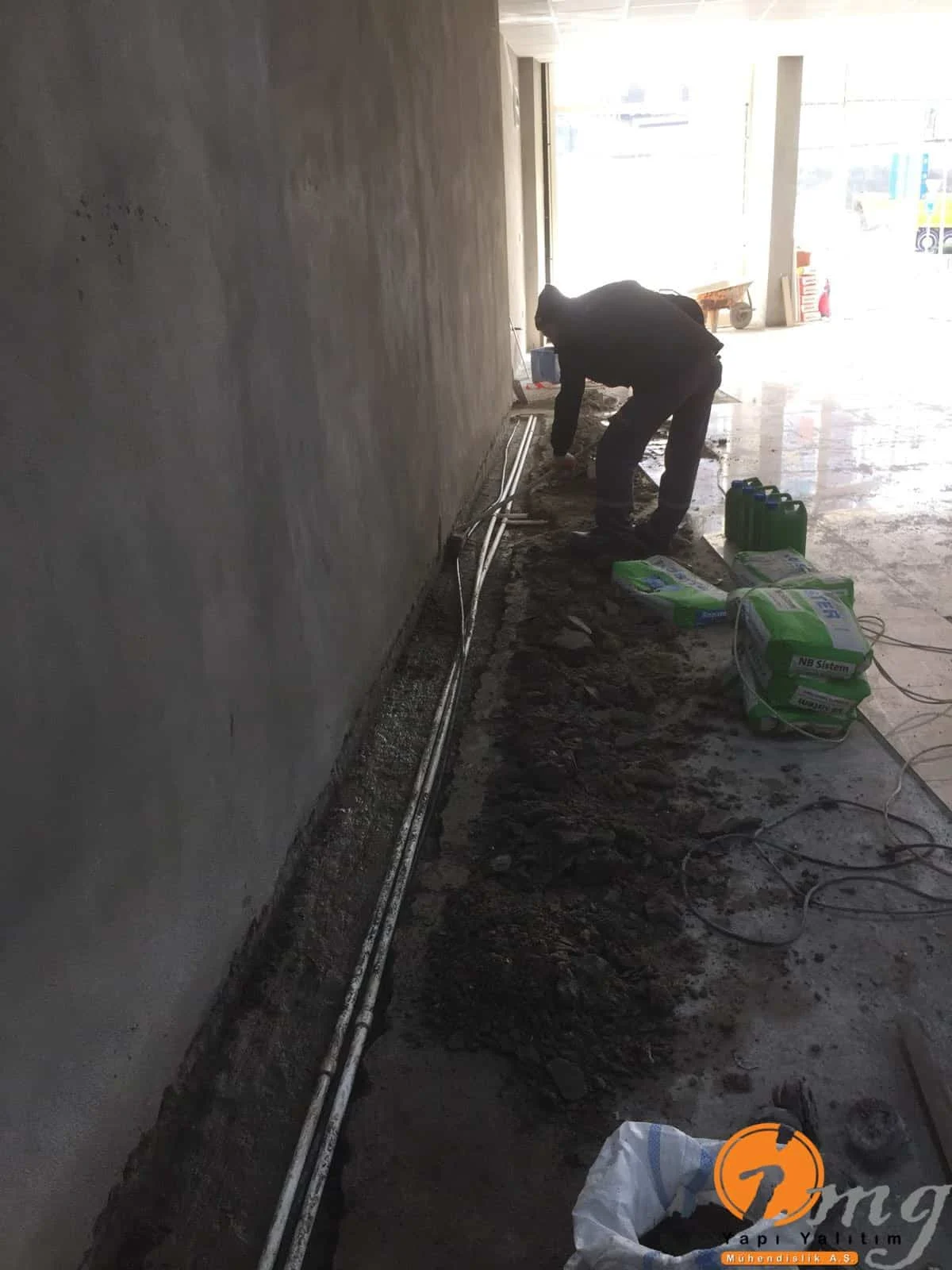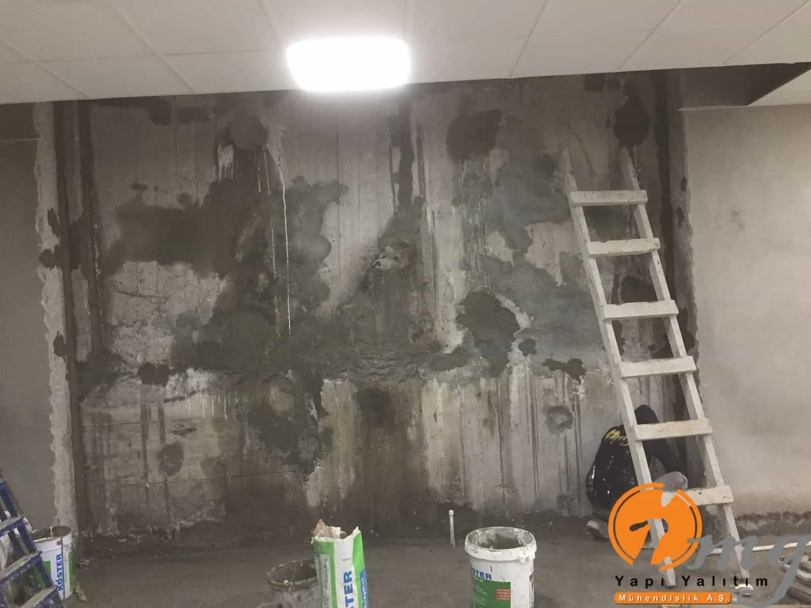Bodrum katındaki kılcal çatlaklardan dolayı aktif su çıkışları oluyordu. Poliüretan enjeksiyon ile duvar kısmına uygulama yapıldı. Sonrasında kristalize su yalıtım malzemesi ile 2 kat uygulama yapılarak su izolasyonu tamamlandı.