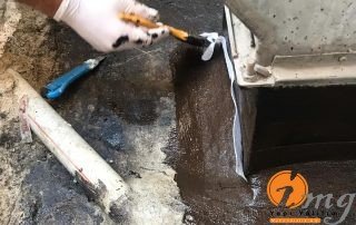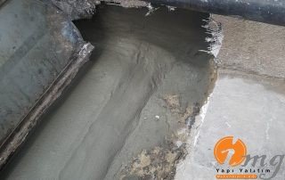 Sac bacanın kenar kısımlarını izolasyona hazır hale getirdikten sonra boruların olduğu kısıma gerekli tamiratlar yapıldı.Sonrasında Köster Deuxan 2K Kauçuk Bitüm esaslı su yalıtımı malzemesi kullanıldı.
