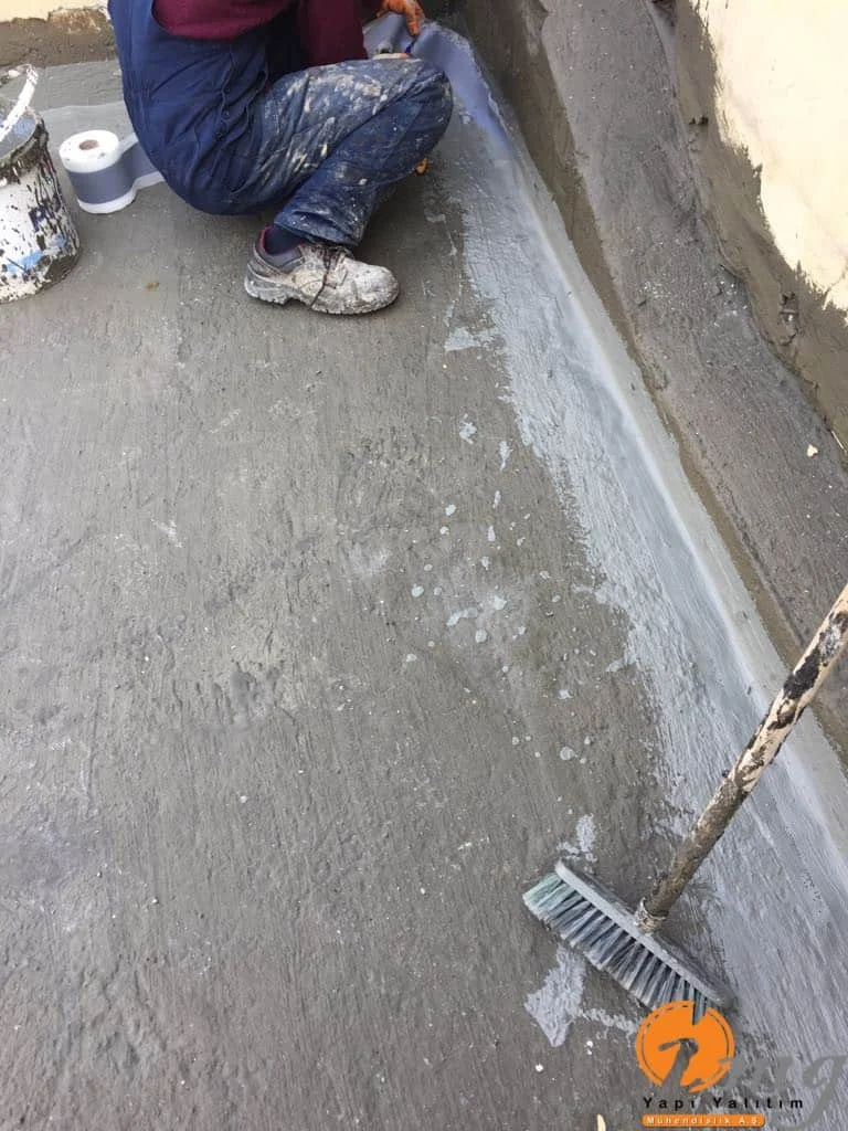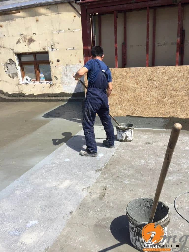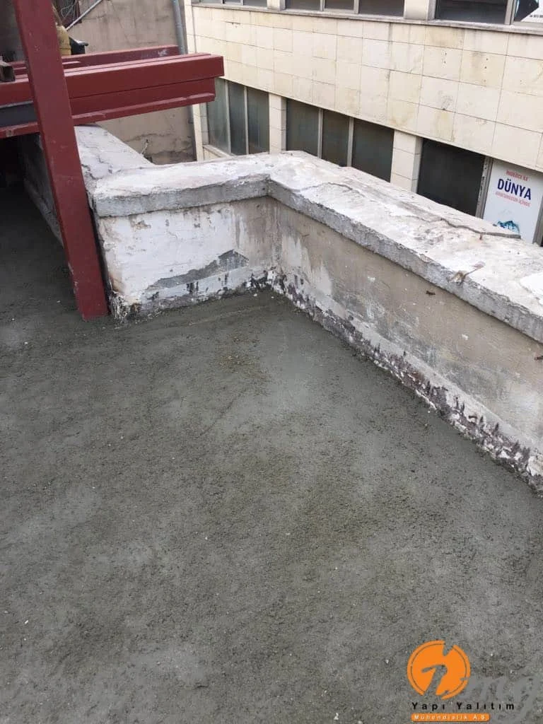 Bu şantiyemizin teras kısmına tam elastik çimento esaslı su yalıtım malzemesi ile uygulama yapıldı.