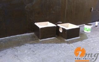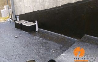 Perde kısmında Kauçuk bitüm esaslı sürme su yalıtımı malzemesi kullanıldı. Köpük ve drenaj levhası en son toprak ile su yalıtımı üzeri kapatıldı.