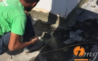 Öncelikle süzgeçler söküldü. Kazımalar yapıldıktan sonra gerekli kısımlara Köster Repamor ile tamirat yapıldı.Köşe kısımlara pah çekildi, süzgeçler değiştirildi ve Köster Deuxan 2K Kauçuk Bitüm esaslı teras yalıtımlarında kullandığımız su yalıtım malzemesini araya 1 kat file gelecek şekilde m2 ye toplamda 3 kg yakın bir sarfiyatla 2 kat uygulama yapıldı. En son aşamada izolasyonun üzerine şap veya beton dökülerek izolasyon sonlandırılmış oldu.